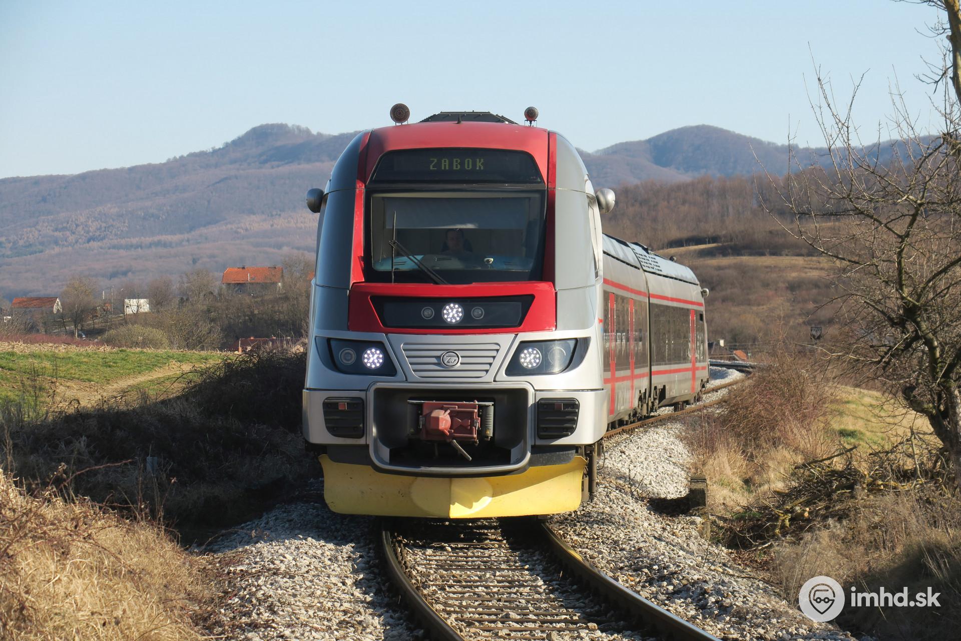 Jednotka HŽ 7022 zdoláva zákruty pri zastávke Madžarevo