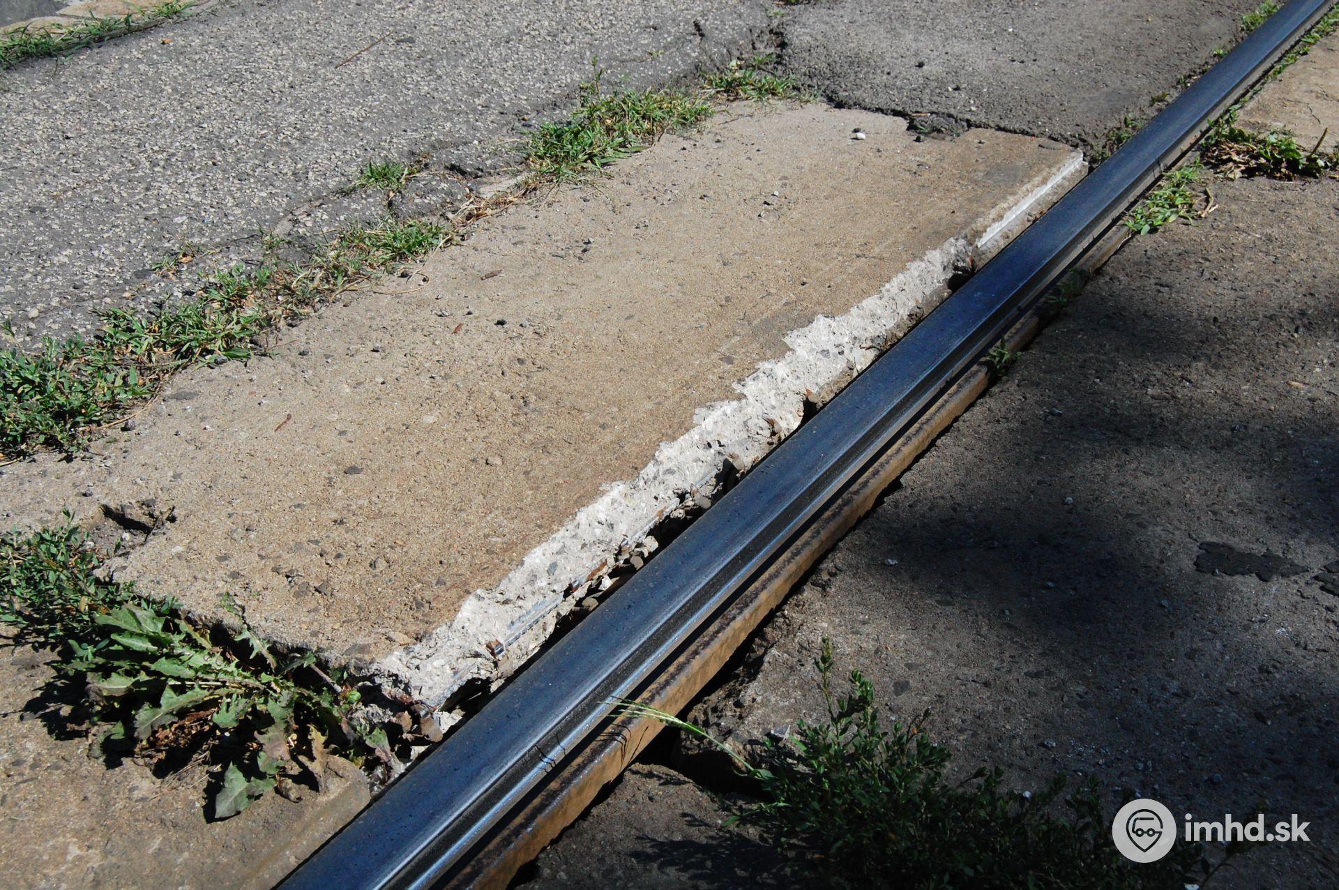 Vystrčený zádlažbový panel nebezpečný pre prechádzajúce električky.