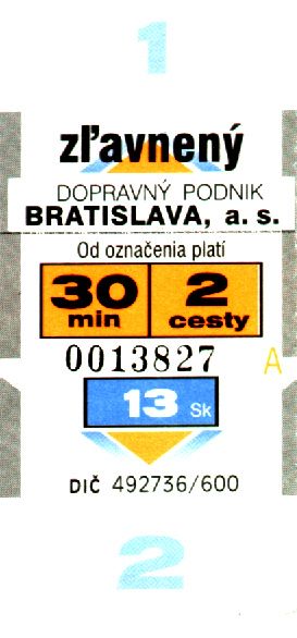 30-min, 2 cesty, zľavnený, 13 Sk.
