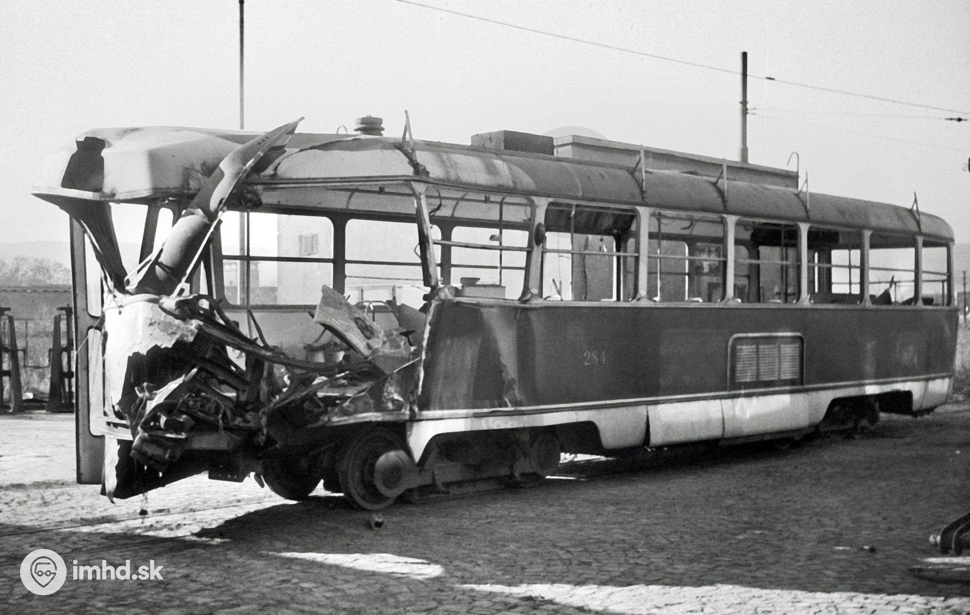 Vyradená #284 odstavená vo vozovni po nehode na Račianskom mýte