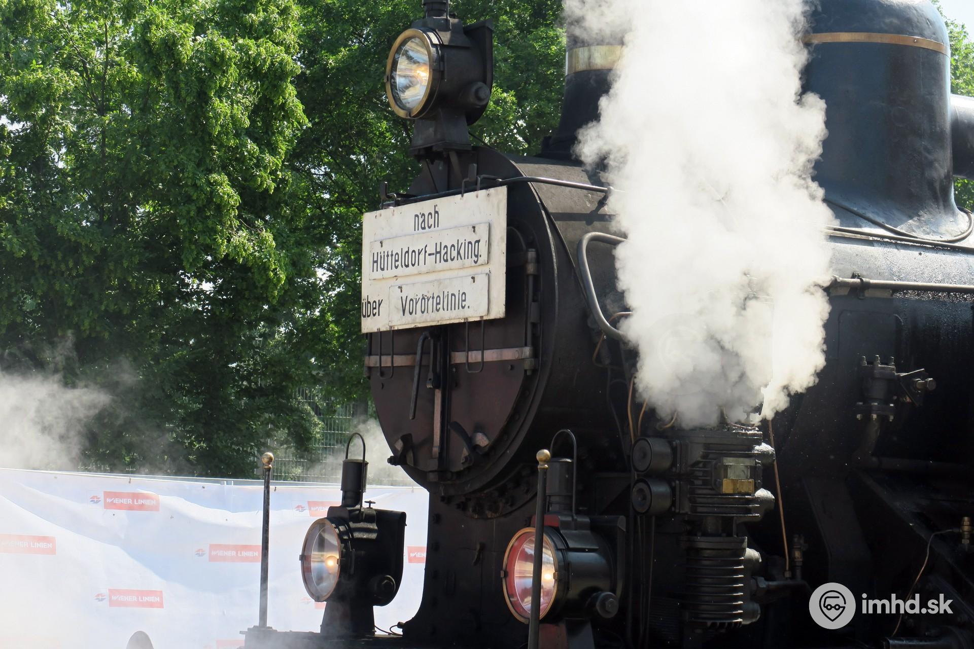 Historická linková tabuľa na čele rušňa vlaku predmestskej linky (dnešná S45).