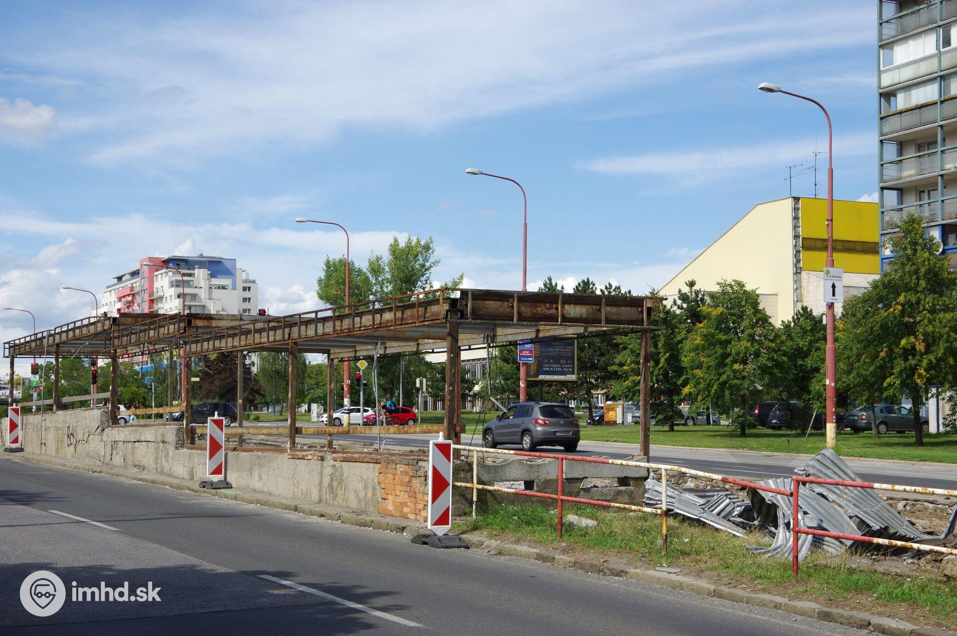 Zastávkový prístrešok v procese demontáže.