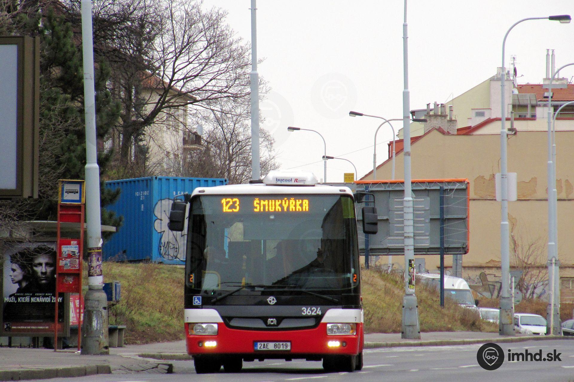 #2AE 8019, 3624, linka 123, Plzeňská ul., zastávka Klamovka