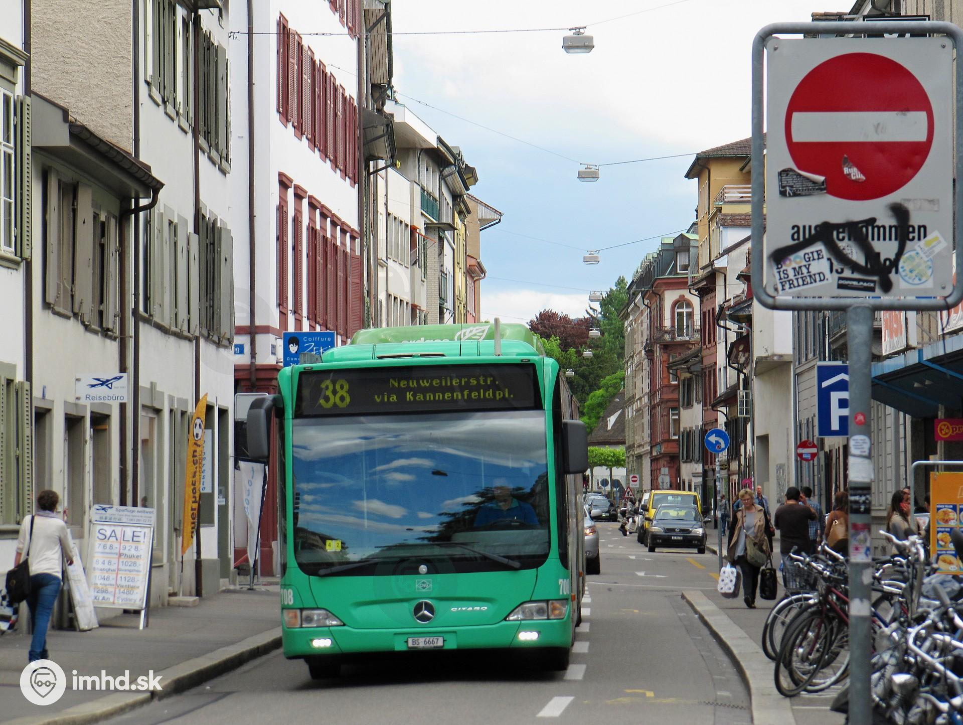 Mercedes-Benz Citaro II G CNG #708 prechádza jednosmerkou s protismernou cyklocestičkou.