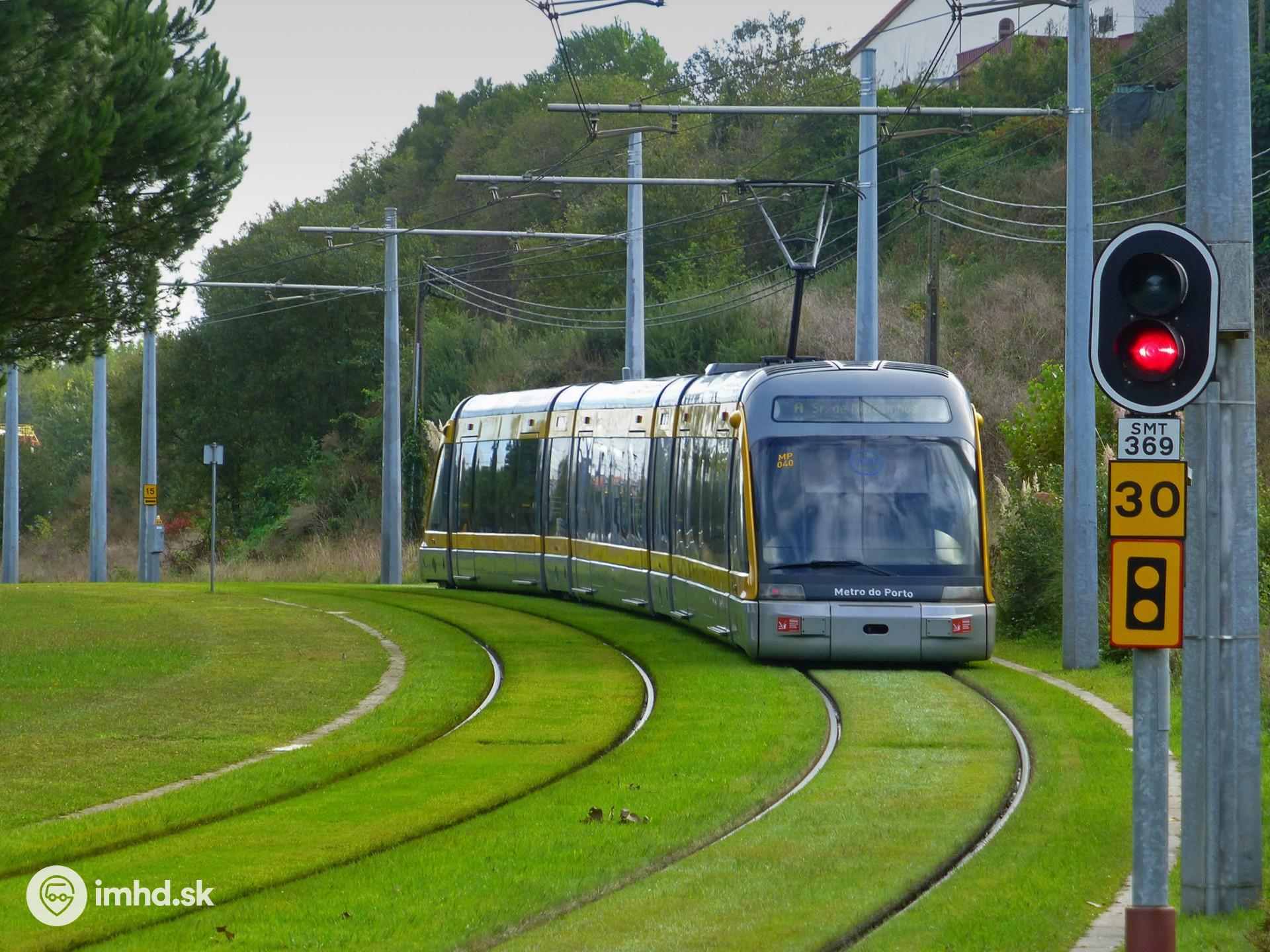 Zatrávnená trať v obratisku za konečnou zastávkou linky A Senhor de Matosinhos. | |