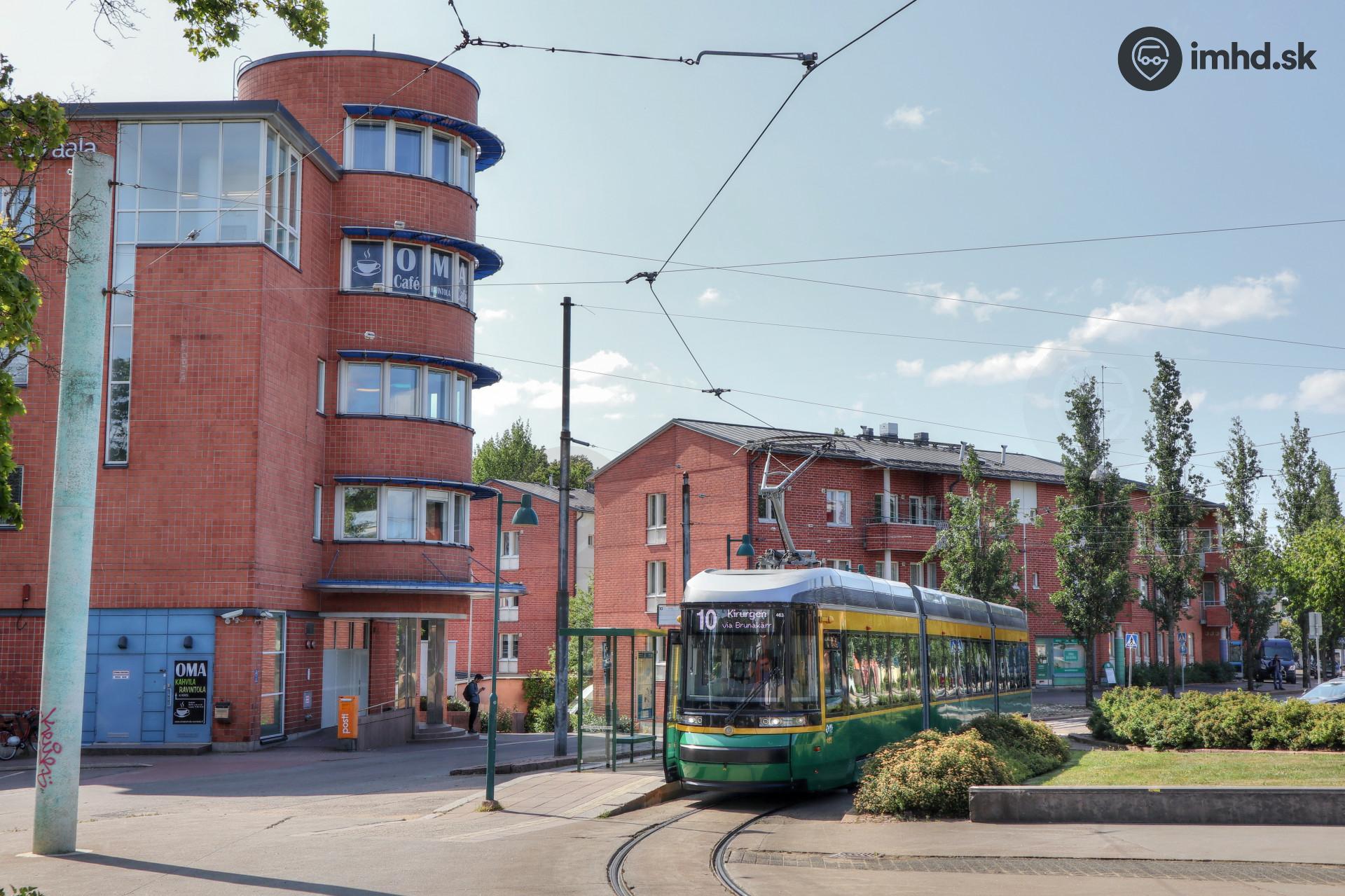Škoda Artic / Škoda ForCity Smart #463 čaká na odchod linky 10 pri Nemocnici Pohjola