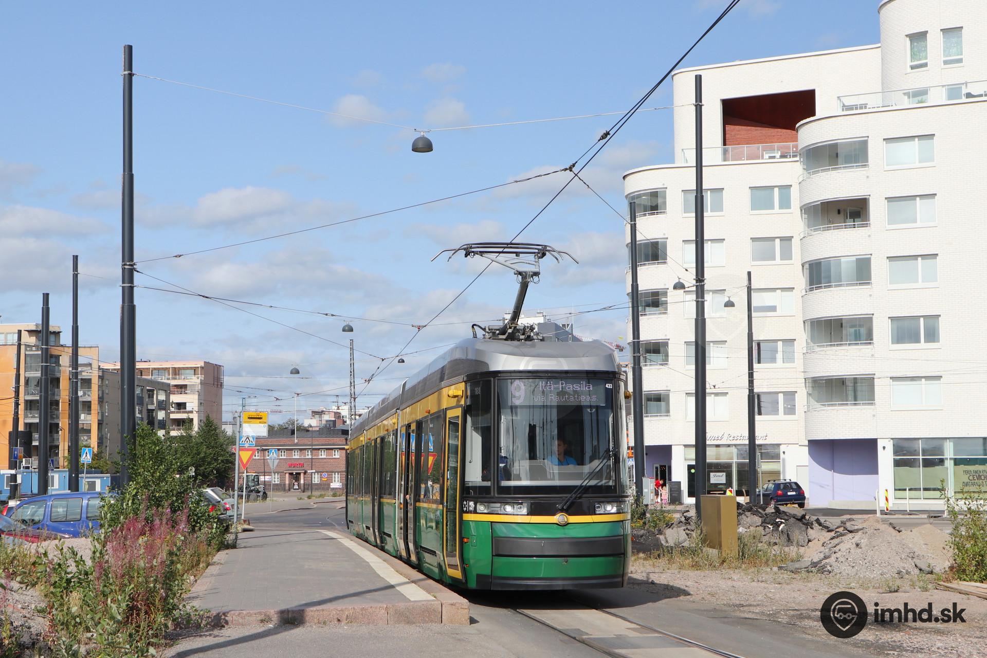 Škoda Artic / Škoda ForCity Smart #433 zastala na výstupnej zastávke Saukonpaasi v rozostavanej štvrti Jätkäsaari. Na jej mieste bol do roku 2010 sústredený prístav a ďalší priemysel s ním prepojený, odvtedy sa však začal premieňať na predovšetkým rezidenčnú štvrť s cieľom dokončiť jej výstavbu do roku 2030. V tejto súvislosti už na začiatku roku 2012 boli po čerstvo dokončenej trati z Ruoholahti do obratiska Saukonpaasi presmerované električky linky 8 a v tom istom roku dokončené prepojenie tohto obratiska s električkovou radiálou k západnému terminálu Länsiterminaali po ktorom dnes premáva linka 9.