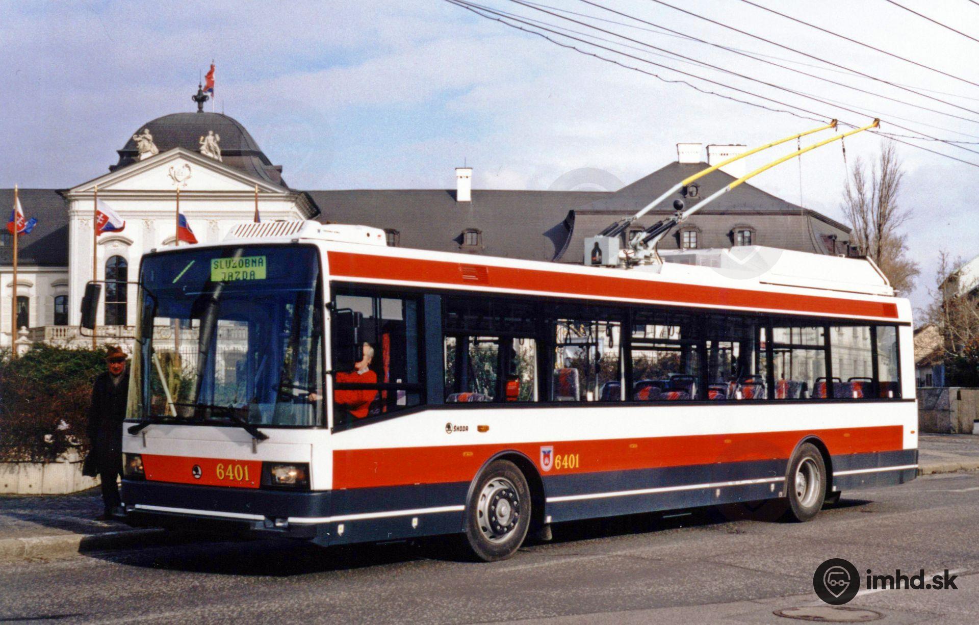 Škoda 21 Tr #6401 na skúšobnej jazde pred Prezidentským palácom.