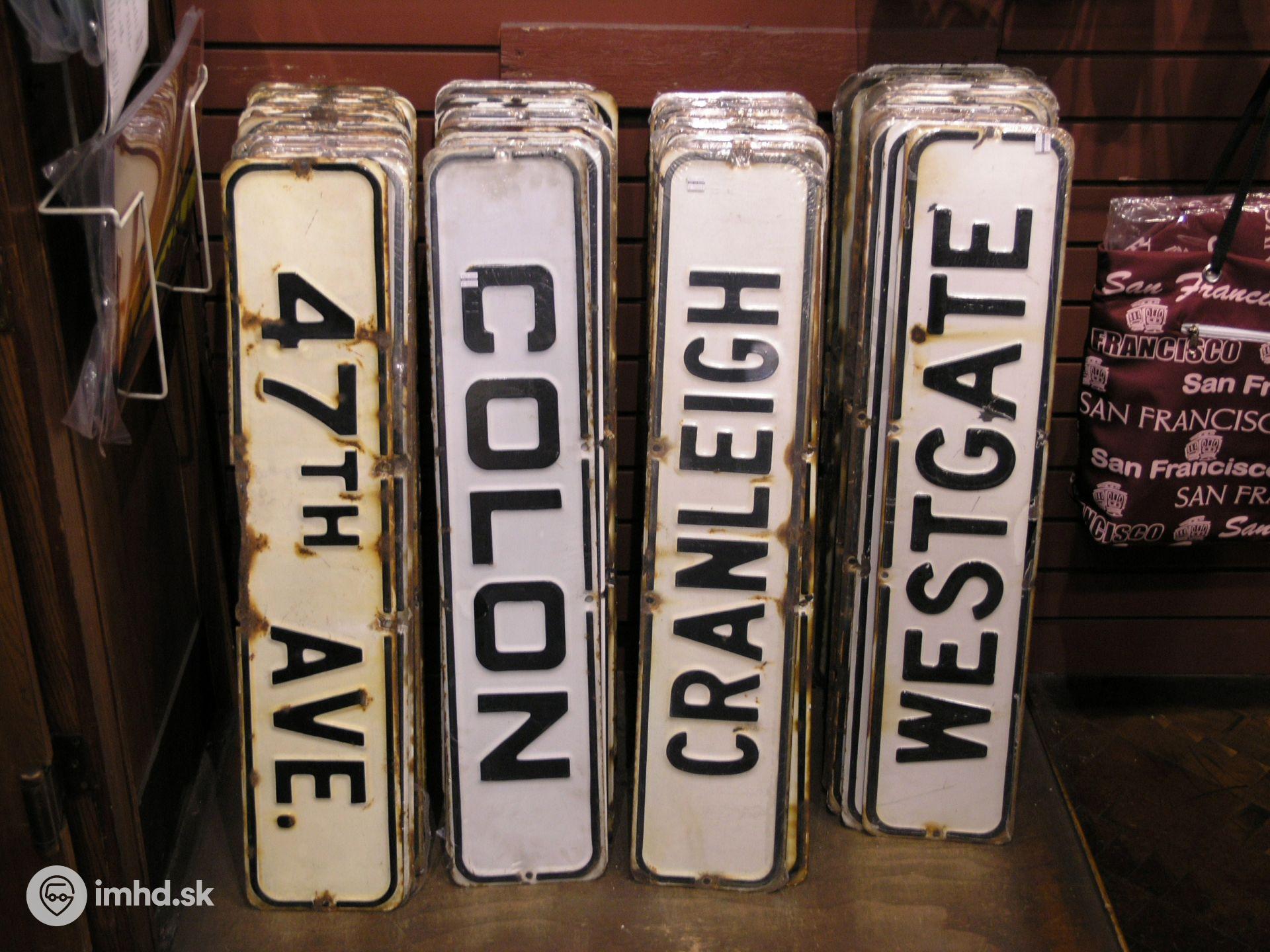 Historické linkové tabule na predaj v Cable Car Museum.