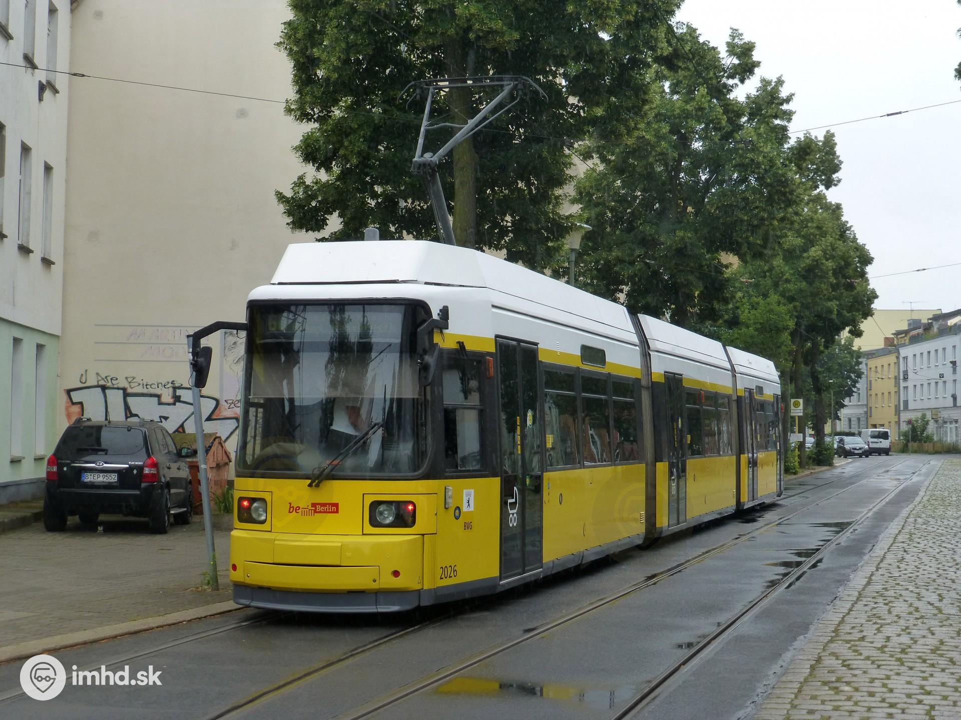 | Električka GT6N #2026 na konečnej Haeckelstraße v blokovej slučke. | |