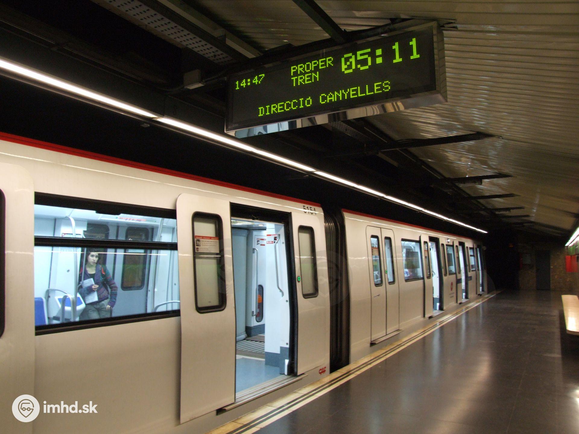 Súprava metra CAF série 5000 si nadbehla oproti cestovnému poriadku, čo je vidieť na Barcelonu pomerne dlhej dobe, za ktorú príde nasledujúci vlak.