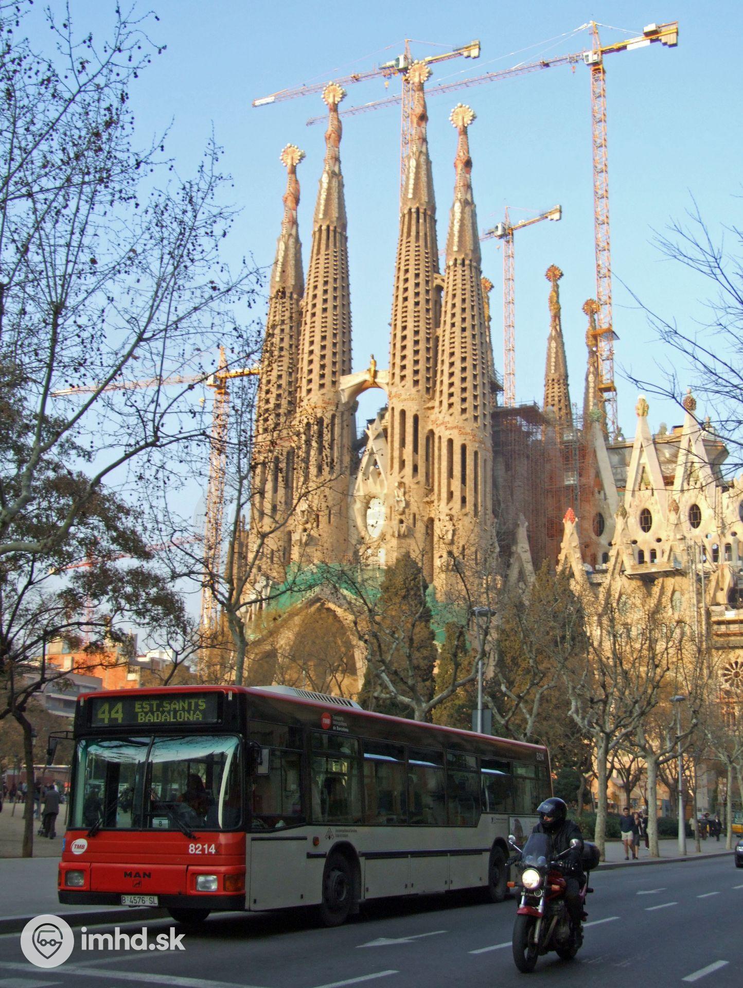 MAN NL202F / Castrosua #8214 pred svetoznámym kostolom Sagrada Família. V minulosti aj v tejto oblasti jazdili električky, z ktorých sa jedna stala osudnou pre tvorcu kostola, Antoniho Gaudího. Ten tri dni po zrážke s električkou podľahol zraneniam. Električková sieť bola s výnimkou historickej linky zrušená po 99 rokoch v roku 1971. Znovuobnovenia električkovej dopravy sa mesto dočkalo až v roku 2004 v okrajových častiach.
