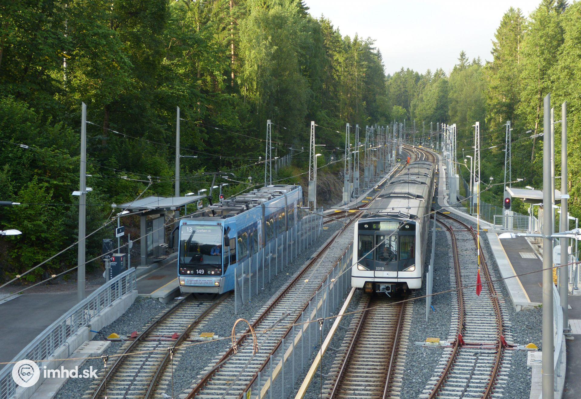 Stretnutie električky SL95 a metra MX3000 na spoločnej trati