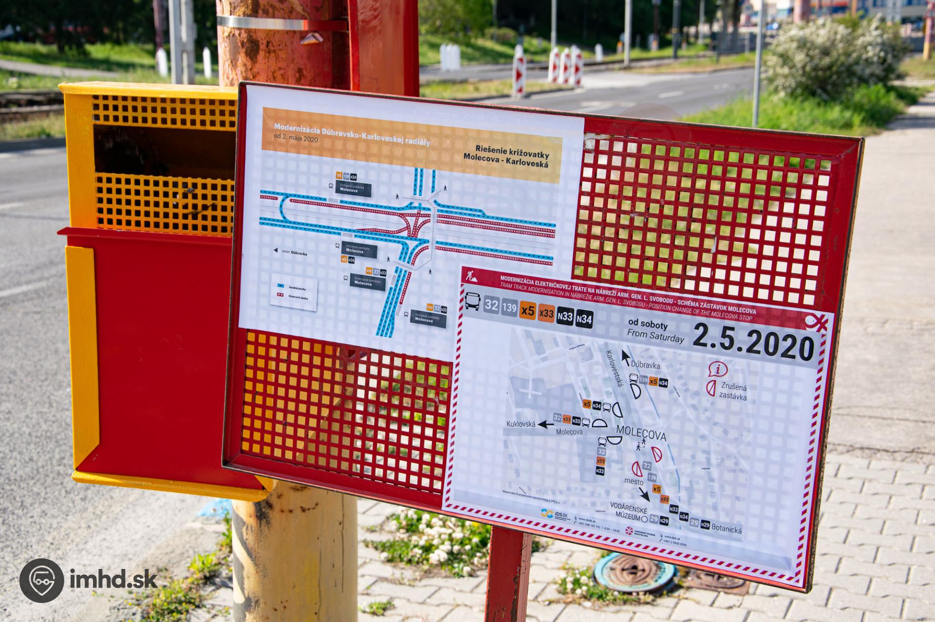 Informácie pre cestujúcich na zastávke Molecova.