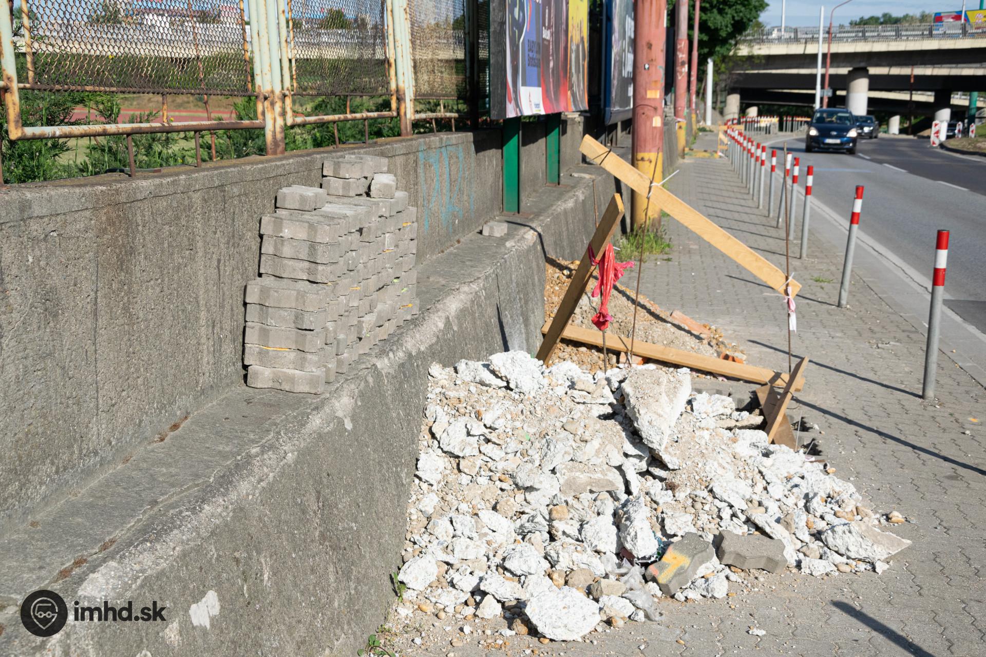 Vykopaná dlažba na múriku.