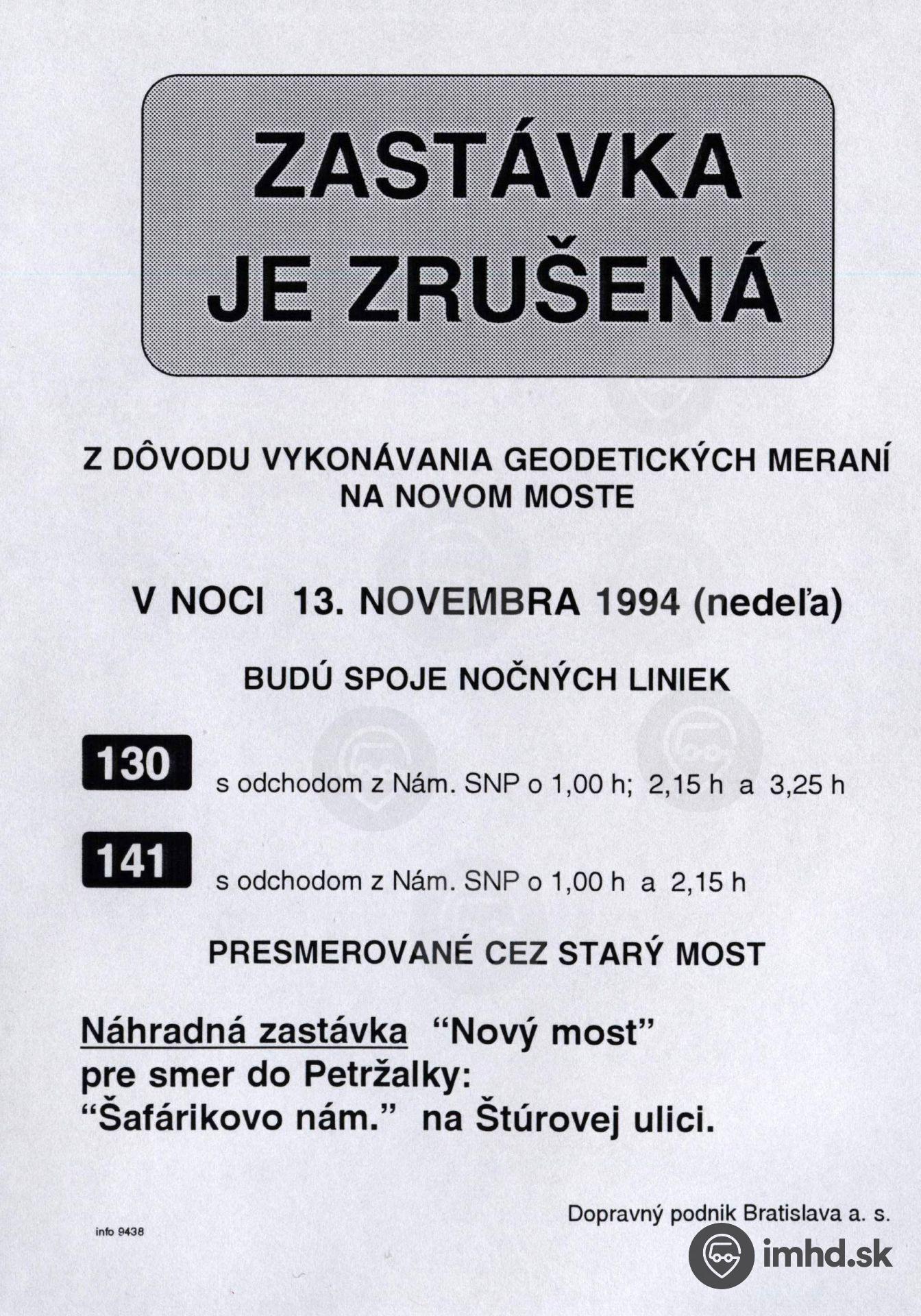Krátkodobé zrušenie zastávok liniek 130 a 141.