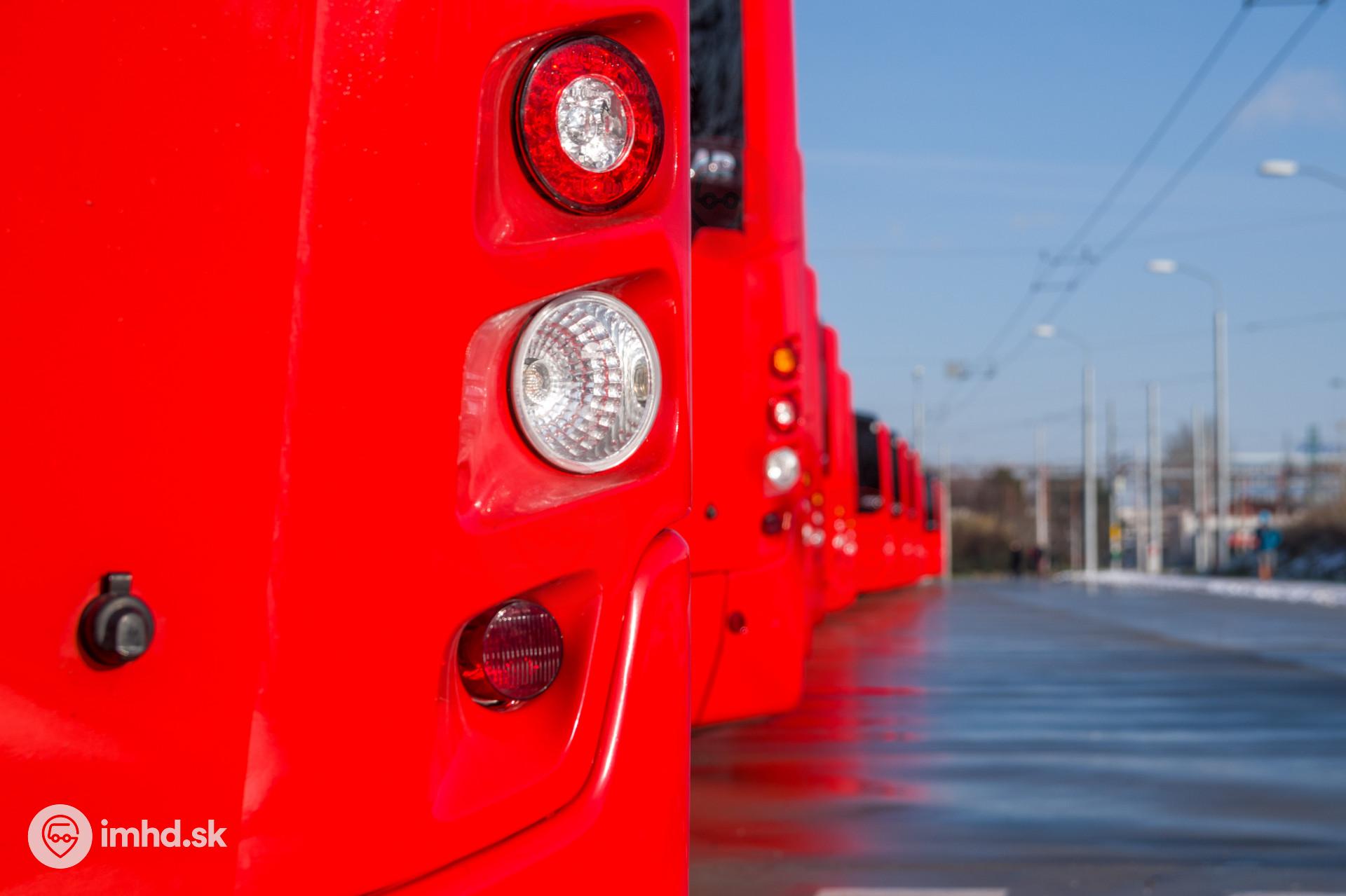 40 nových autobusov Otokar Kent zoradených na trolejbusovej stojánke