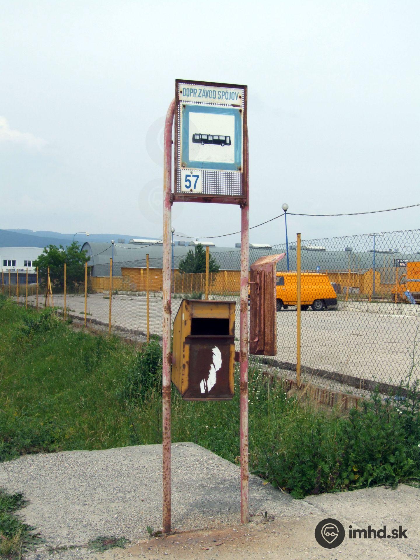 Zastávka Mokraď je maskovaná starým názvom Dopravný závod spojov.
