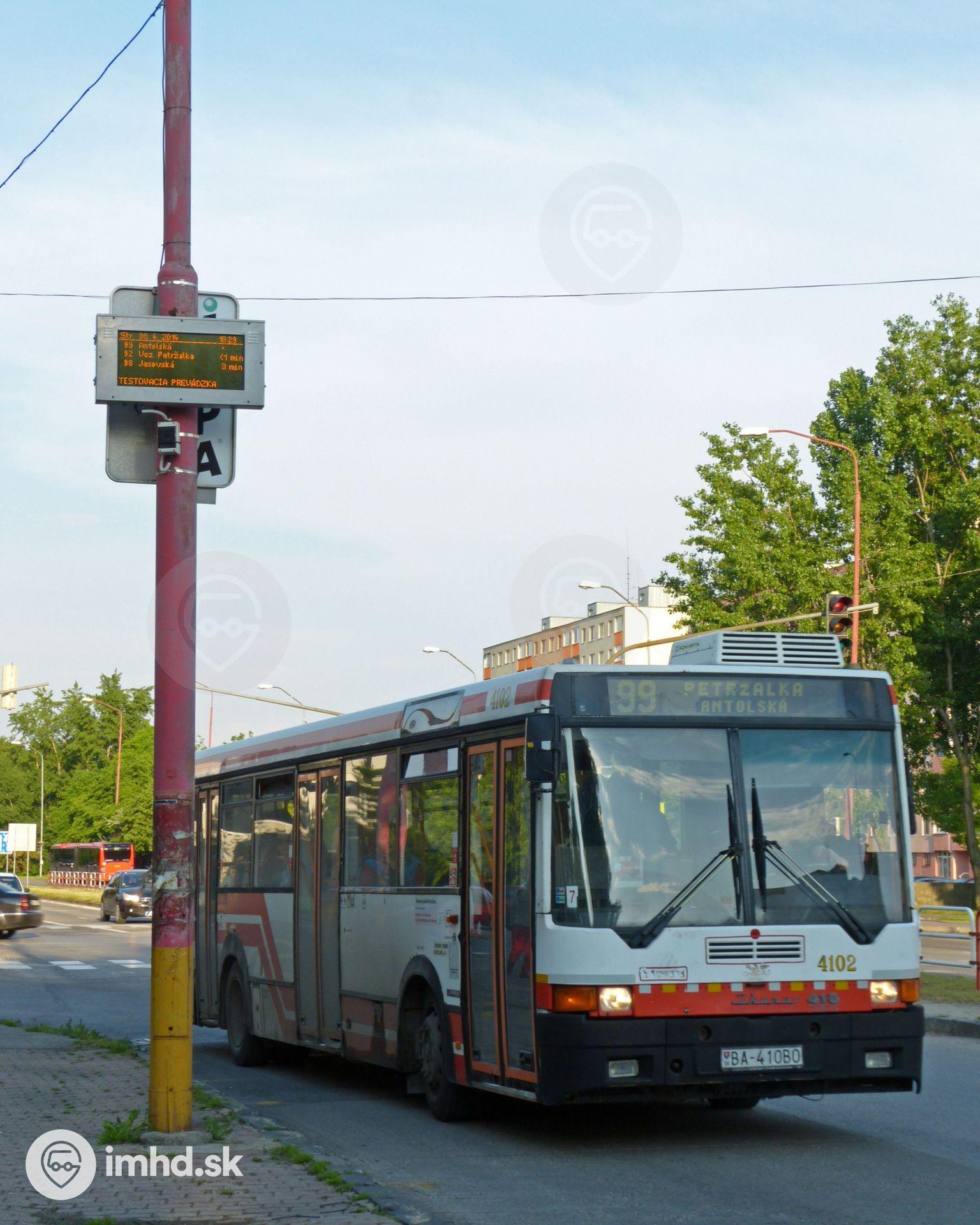 #4102 prechádza pod zastávkovou tabuľou