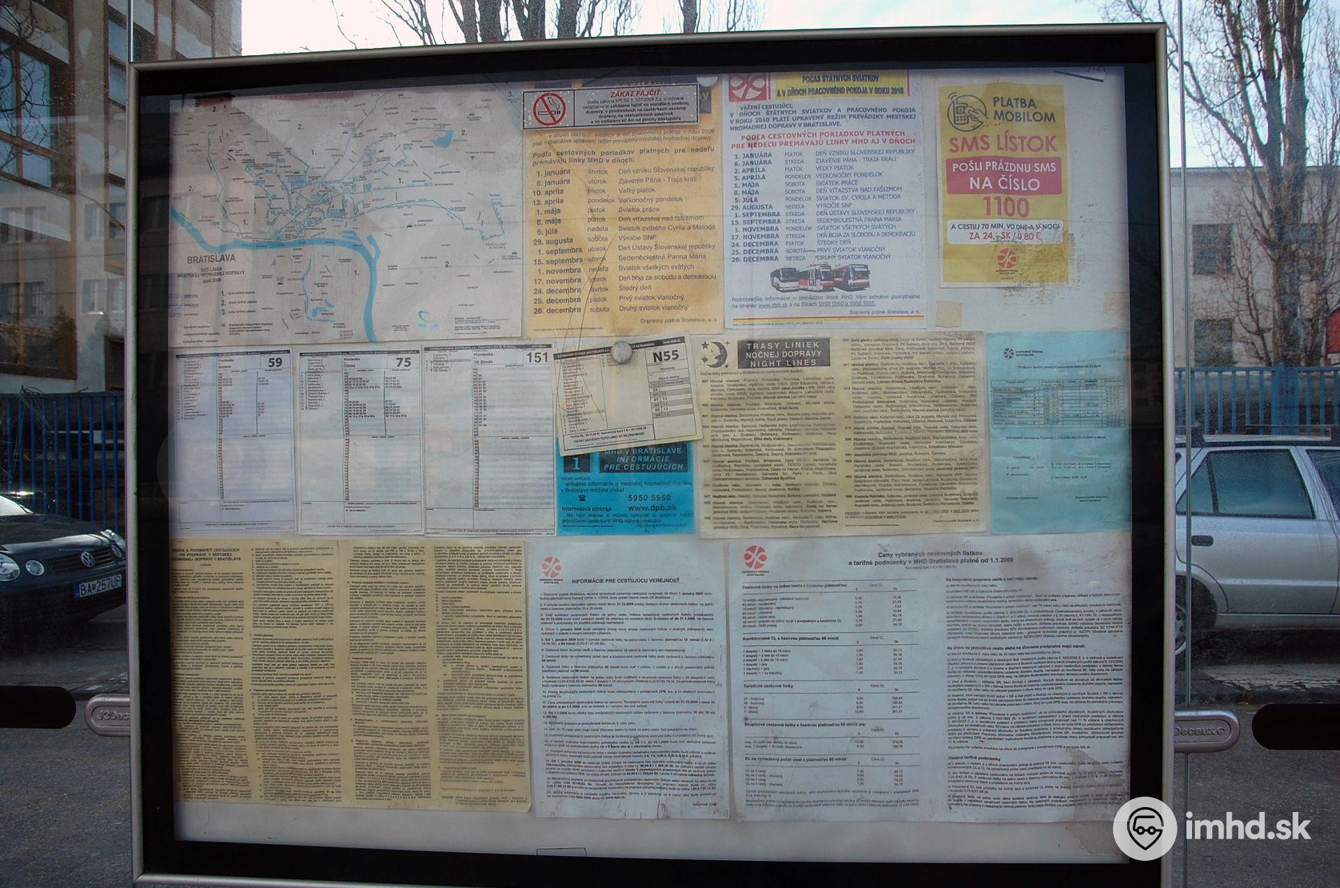 Cestovné poriadky a ďalsie oznamy pre cestujúcich na zastávke Pionierska.