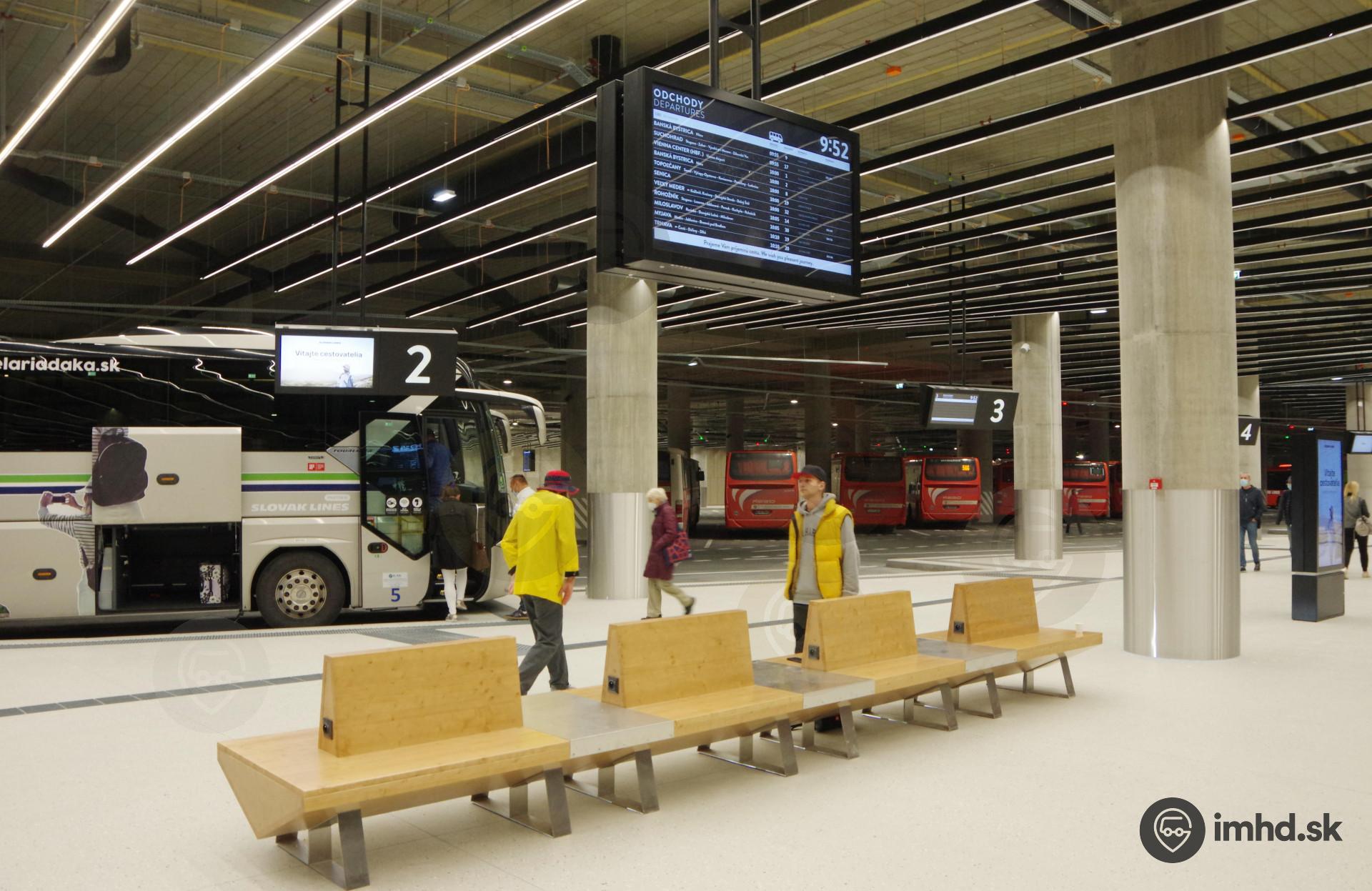 Lavice na nástupištiach so zásuvkami pre mobilné zariadenia.