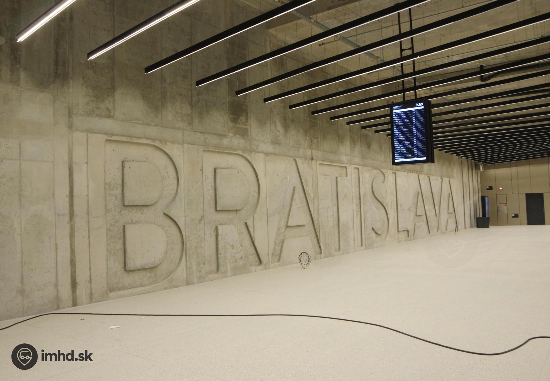 | Nápis Bratislava na výstupišti autobusovej stanice. | |