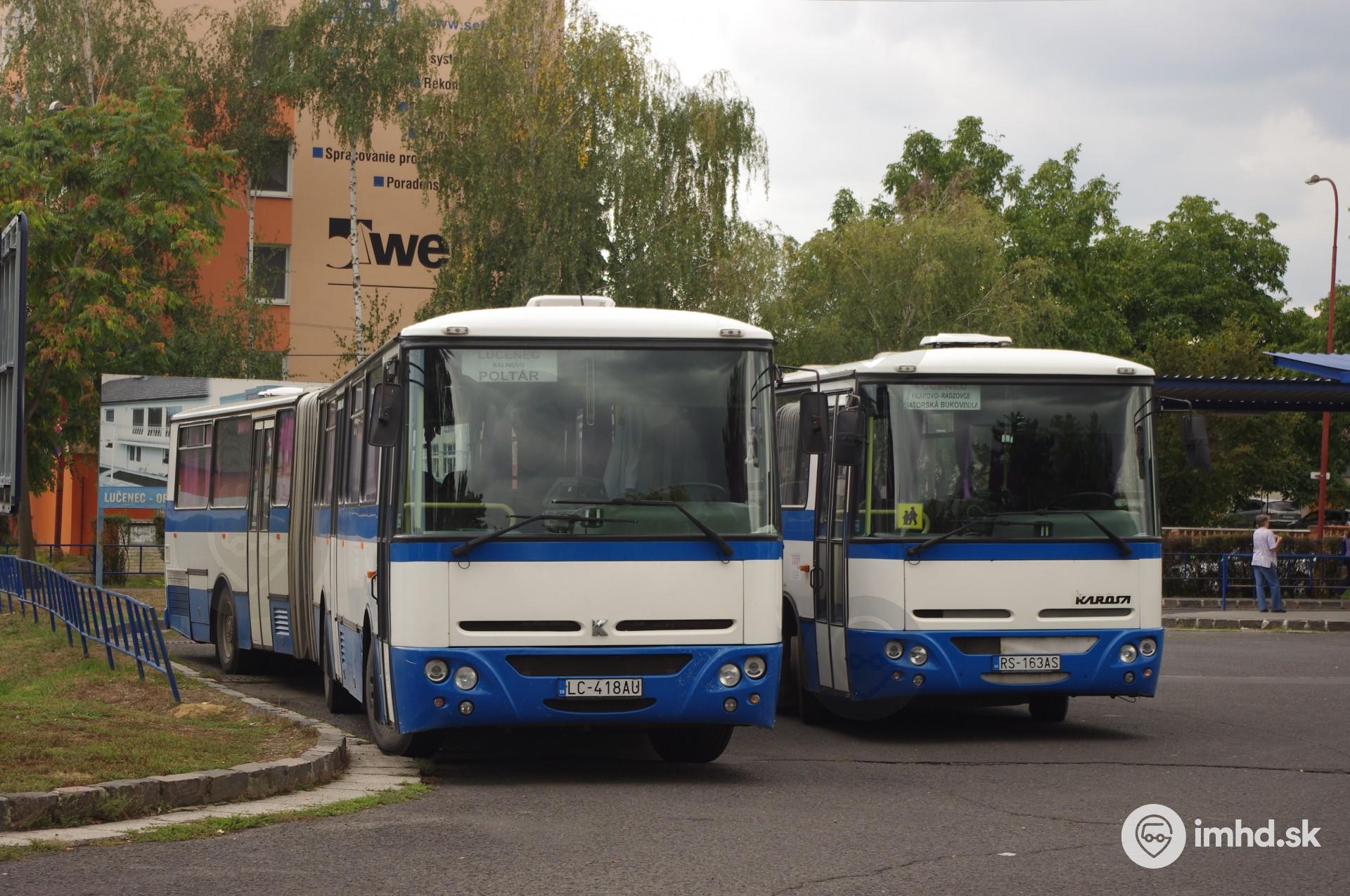 | Posledné 2 autobusy Karosa C 744 SAD Lučenec stoja pred odpoludňajšou špičkou na lučeneckej autobusovej stanici. | |