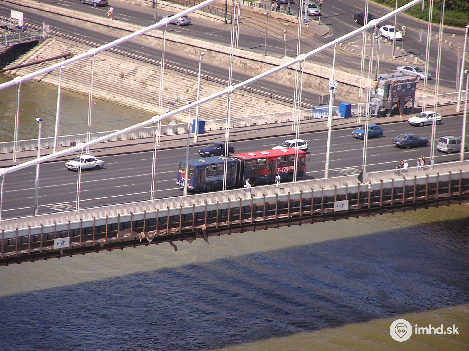 Pohľad z Citately (Gellértovho vrchu) na Ikarus 280 na Alžbetinom moste. Linky 7-173 spájajú juhozápadnú časť Budapešti so severovýchodom. V budúcnosti má značnú časť ich kapacity prebrať budované metro 4.