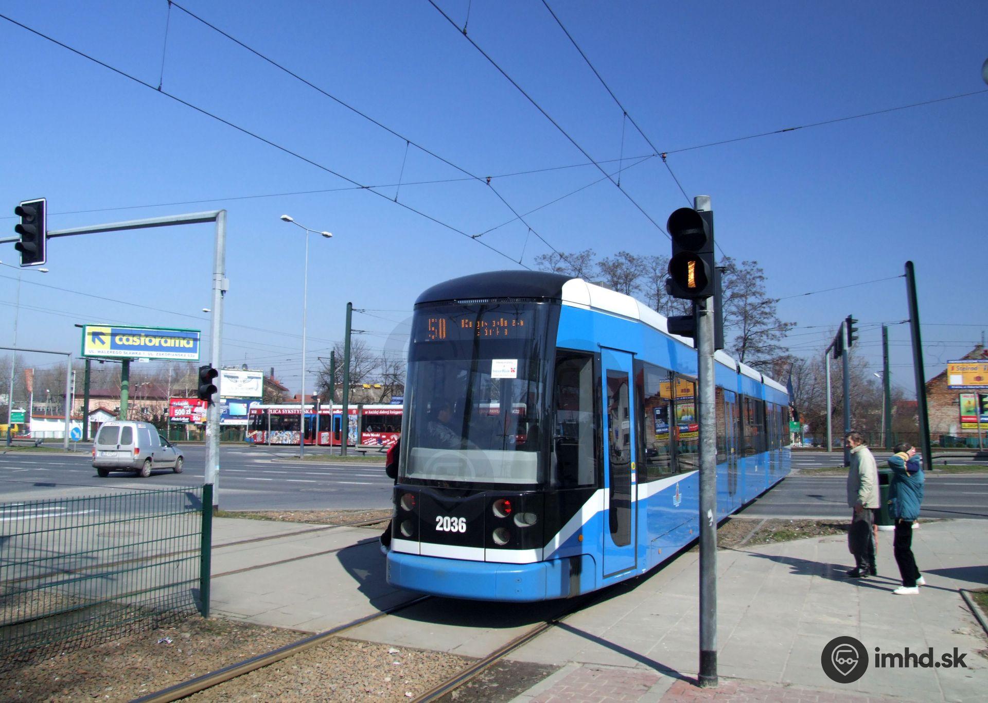 Bombardier NGT6/2 #2036 odchádza na Wielickú ulicu.
