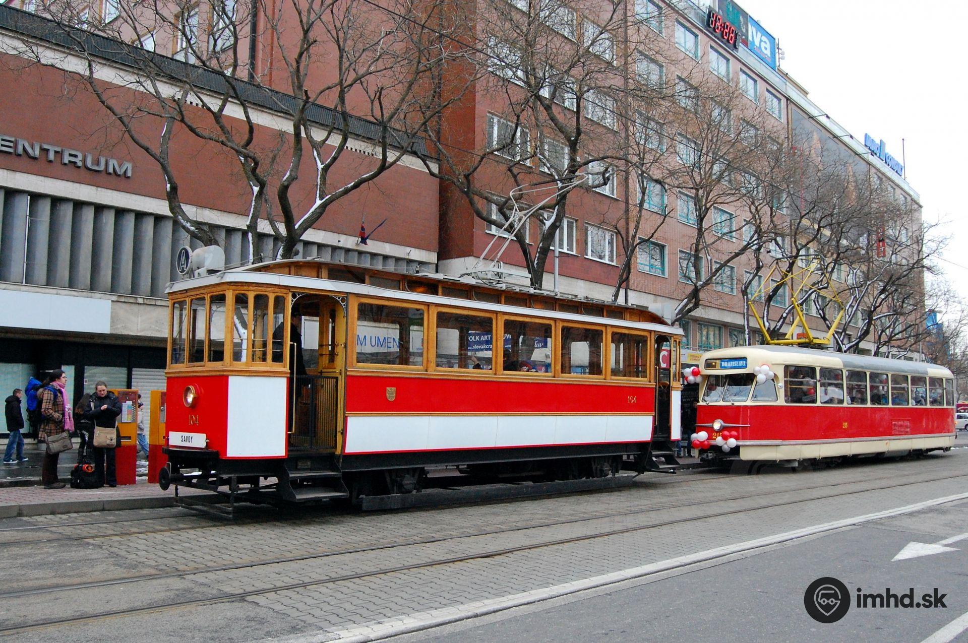 Stretnutie dvoch historických električiek, ktorých vekový rozdiel je štyridsaťdeväť rokov.