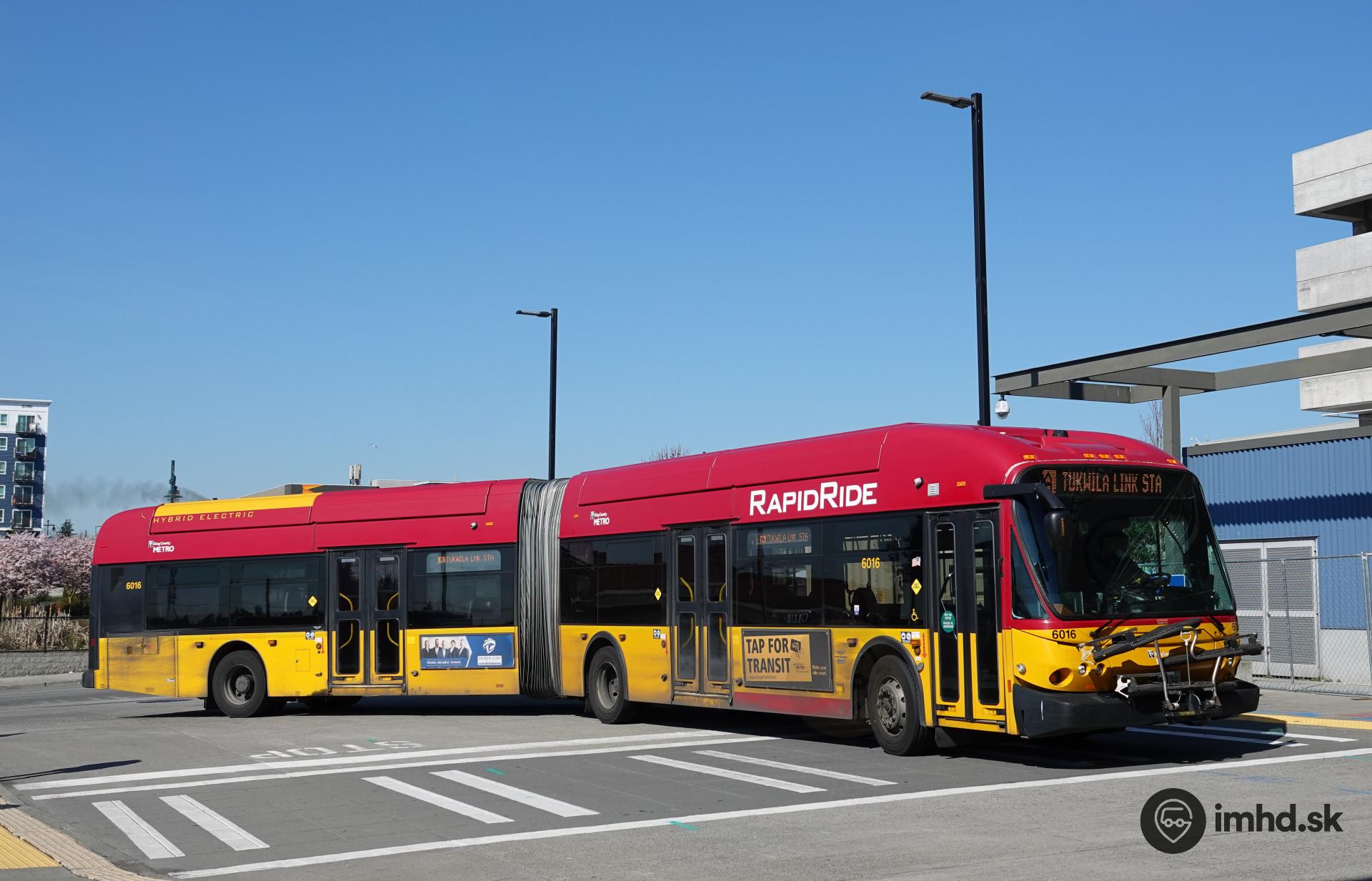 Autobusy na zrýchlených linkách sú brandované nápisom RapidRide a červenou farbou strešnej časti.