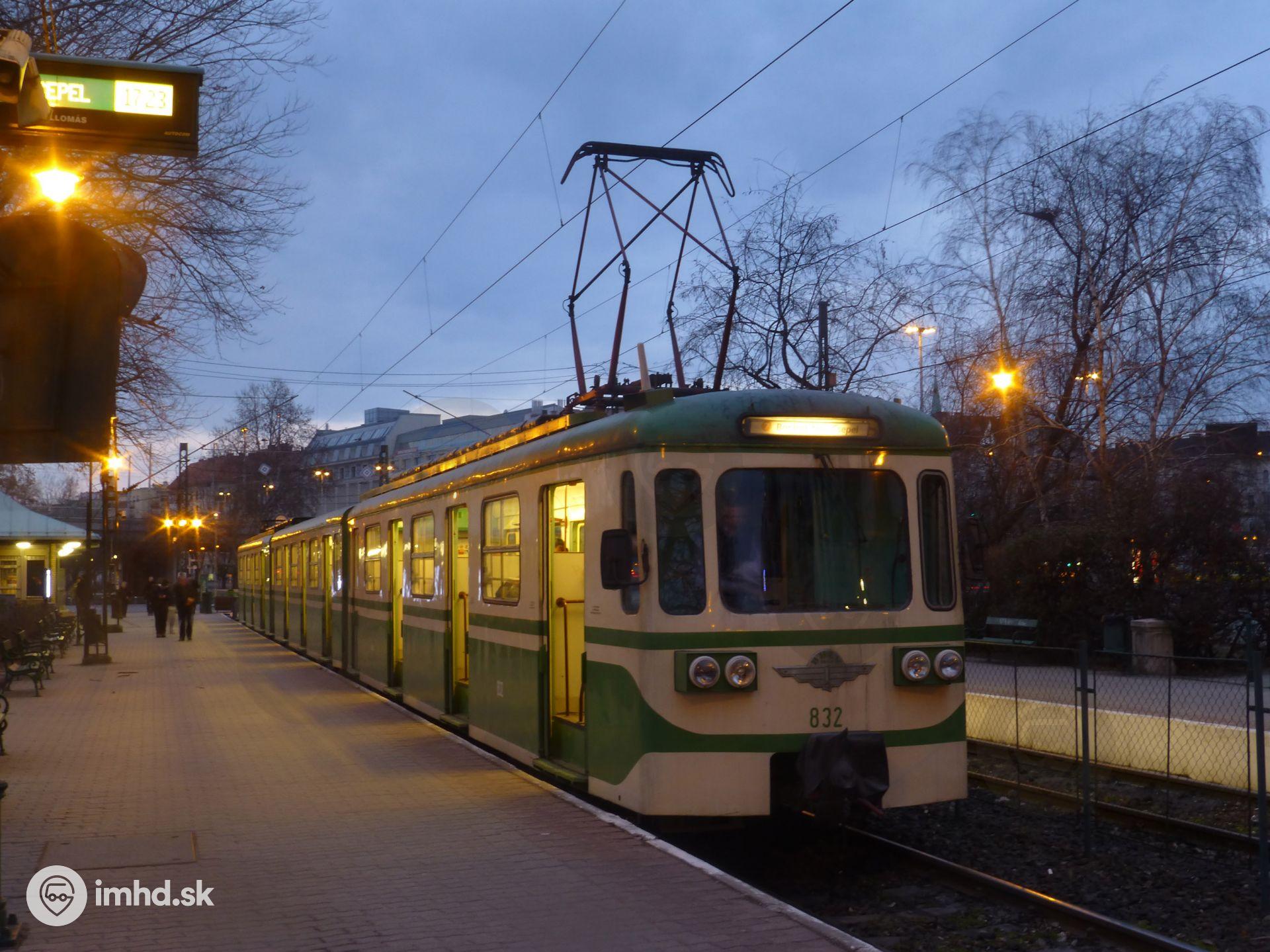 Vlak HÉV MIX/A #832 na konečnej Boráros tér