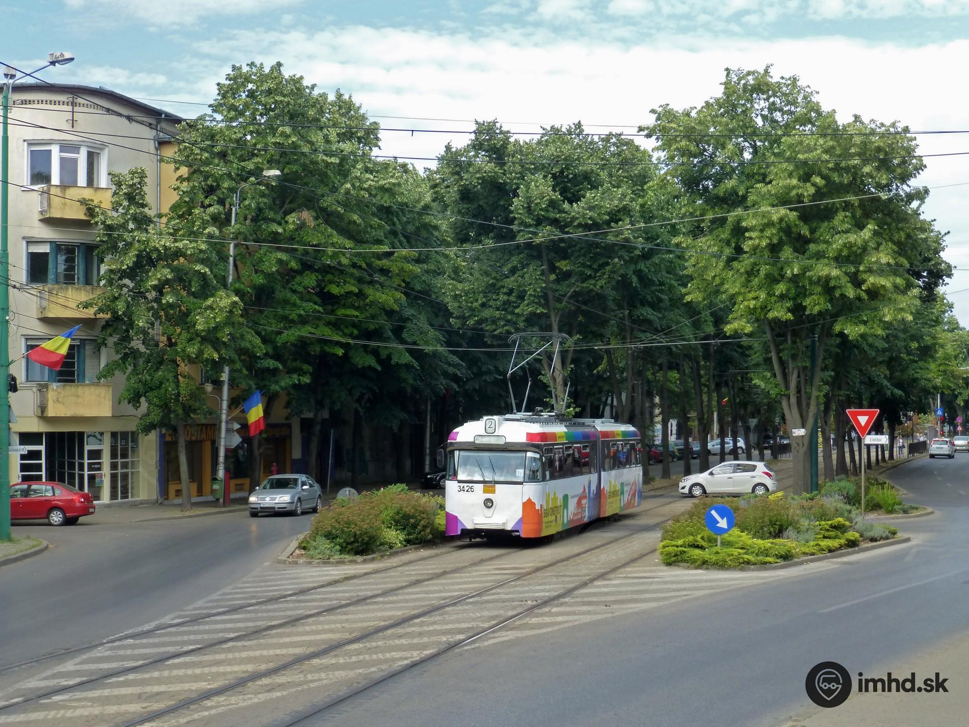 Hansa GT4b na trati v strede ulice.