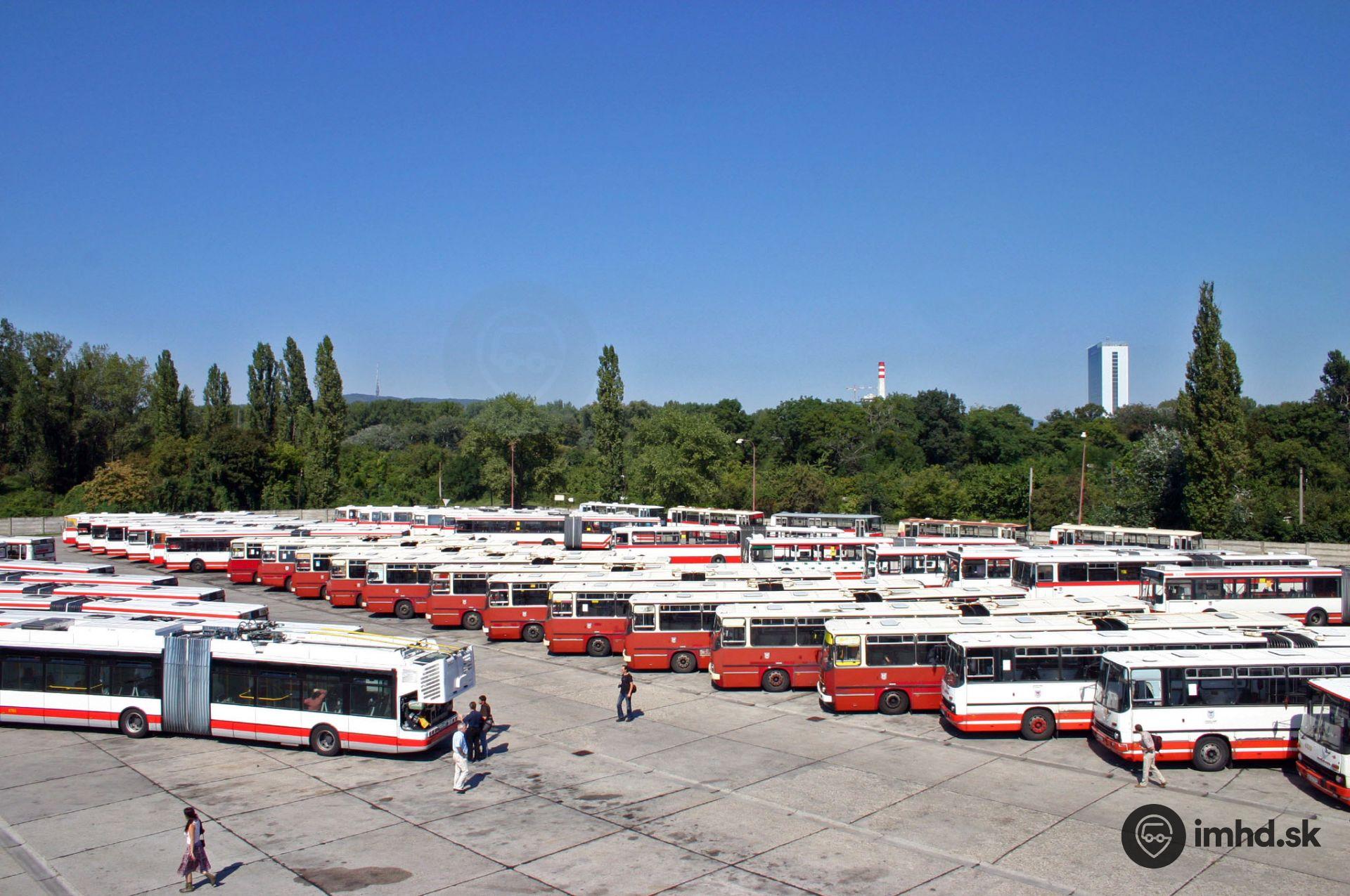 Prehliadka vzorne usporiadaných vozidiel v starej vozovni Petržalka. Neobvykle na návštevu zavítal aj trolejbus Škoda 25 Tr Irisbus.