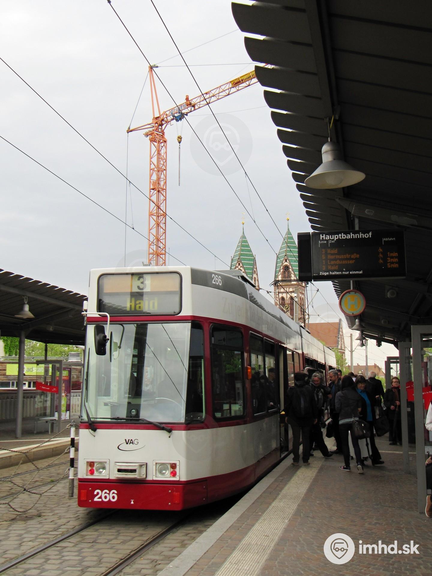 Düwag GT8Z #266 na zastávke Hauptbahnhof.