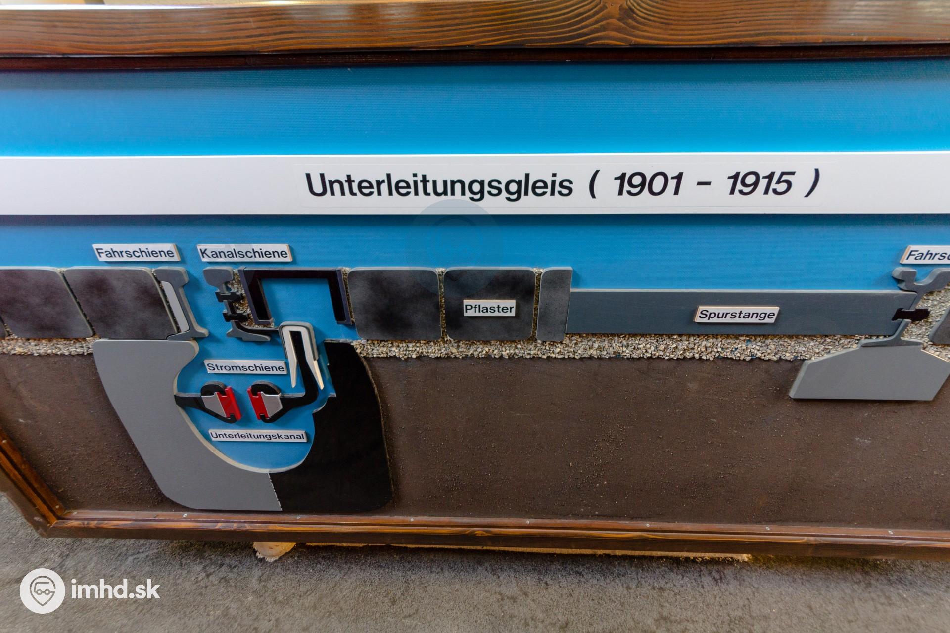 Prierez uzavretým koľajovým zvrškom so spodným napájaním, používaným od roku 1901 do roku 1915