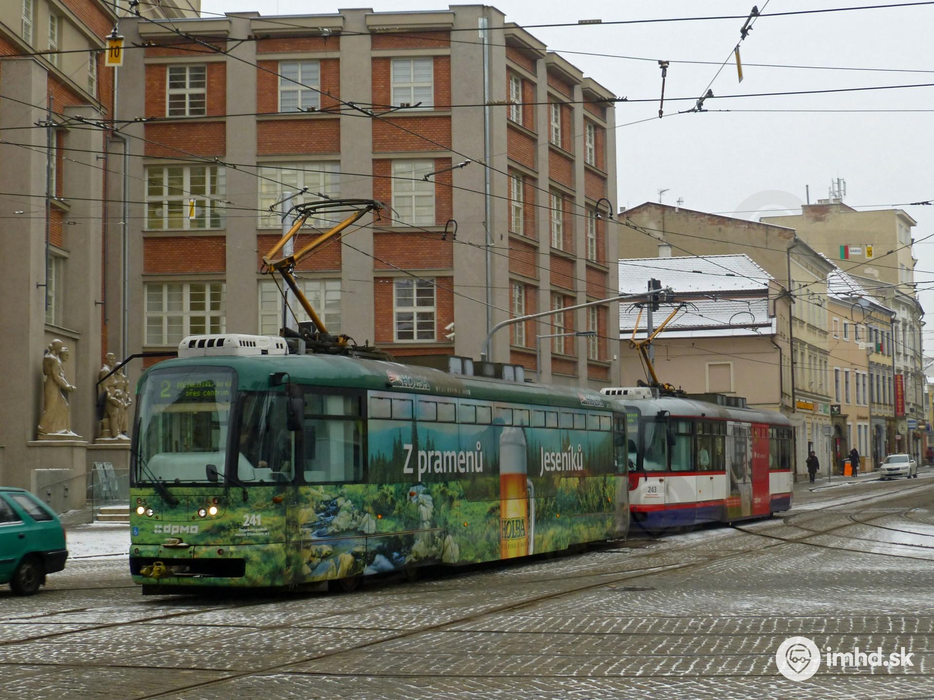 Súprava električiek Vario LFR.S #241+243 s reklamou na pivovar Holba.