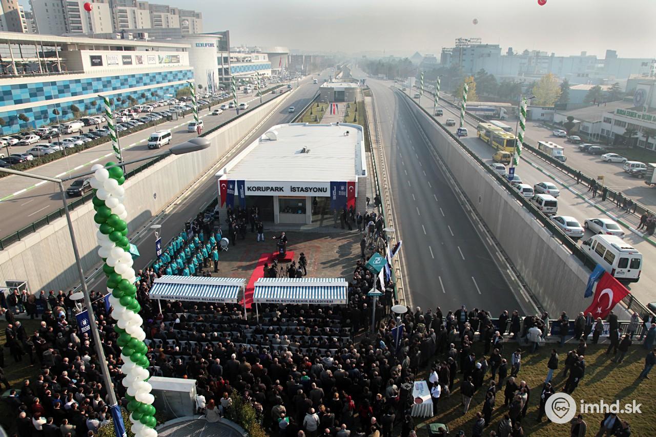 Slávnostné otvorenie nového úseku metra Organize Sanayi - Emek. Pohľad na podzemnú stanicu Korupark.