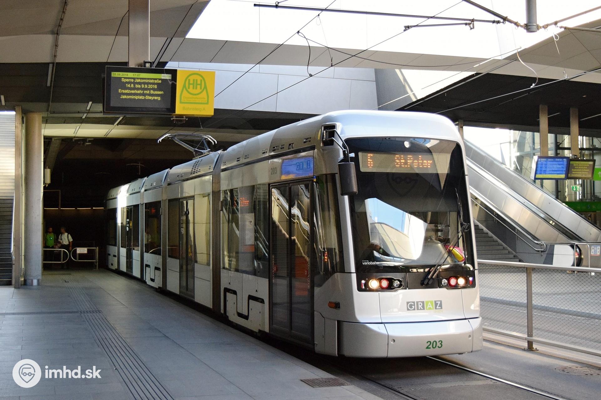 Stadler Variobahn #203 prichádza na zastávku Hauptbahnhof.