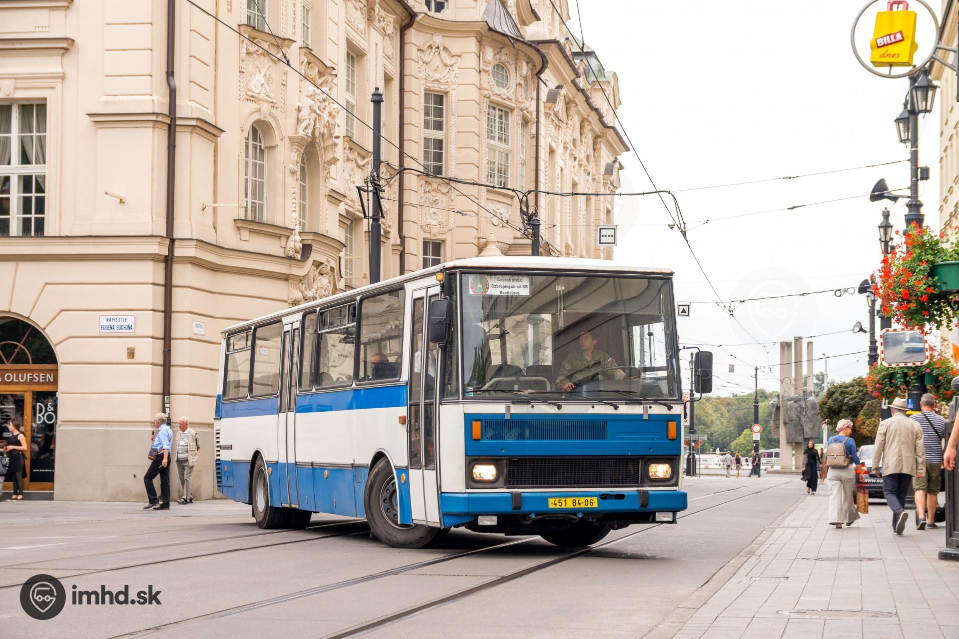 Karosa C 734 čestnej stráže sa otáča na Mostovej ulici