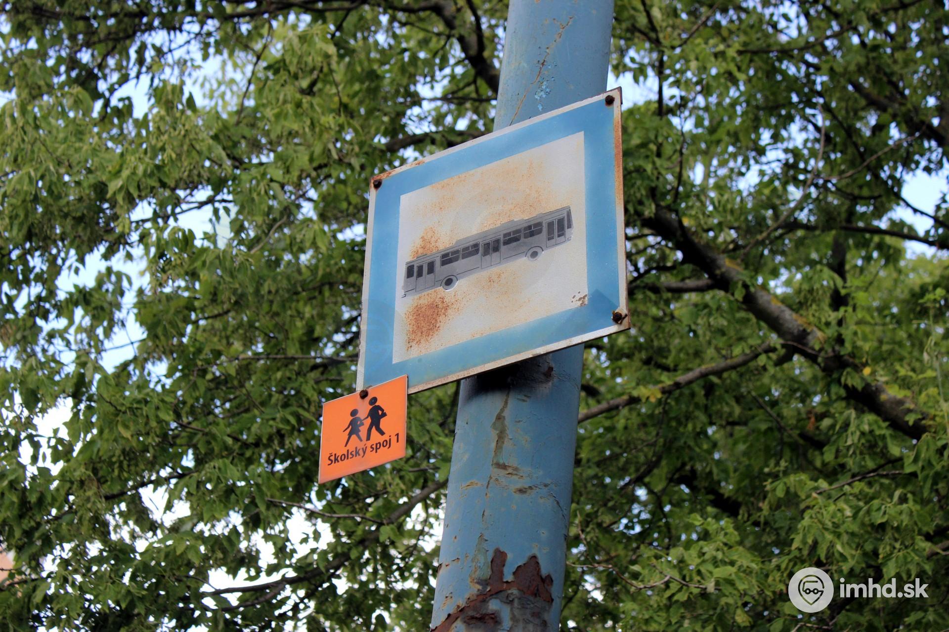Označenie zastávky Hrobákova pre školský spoj 1.