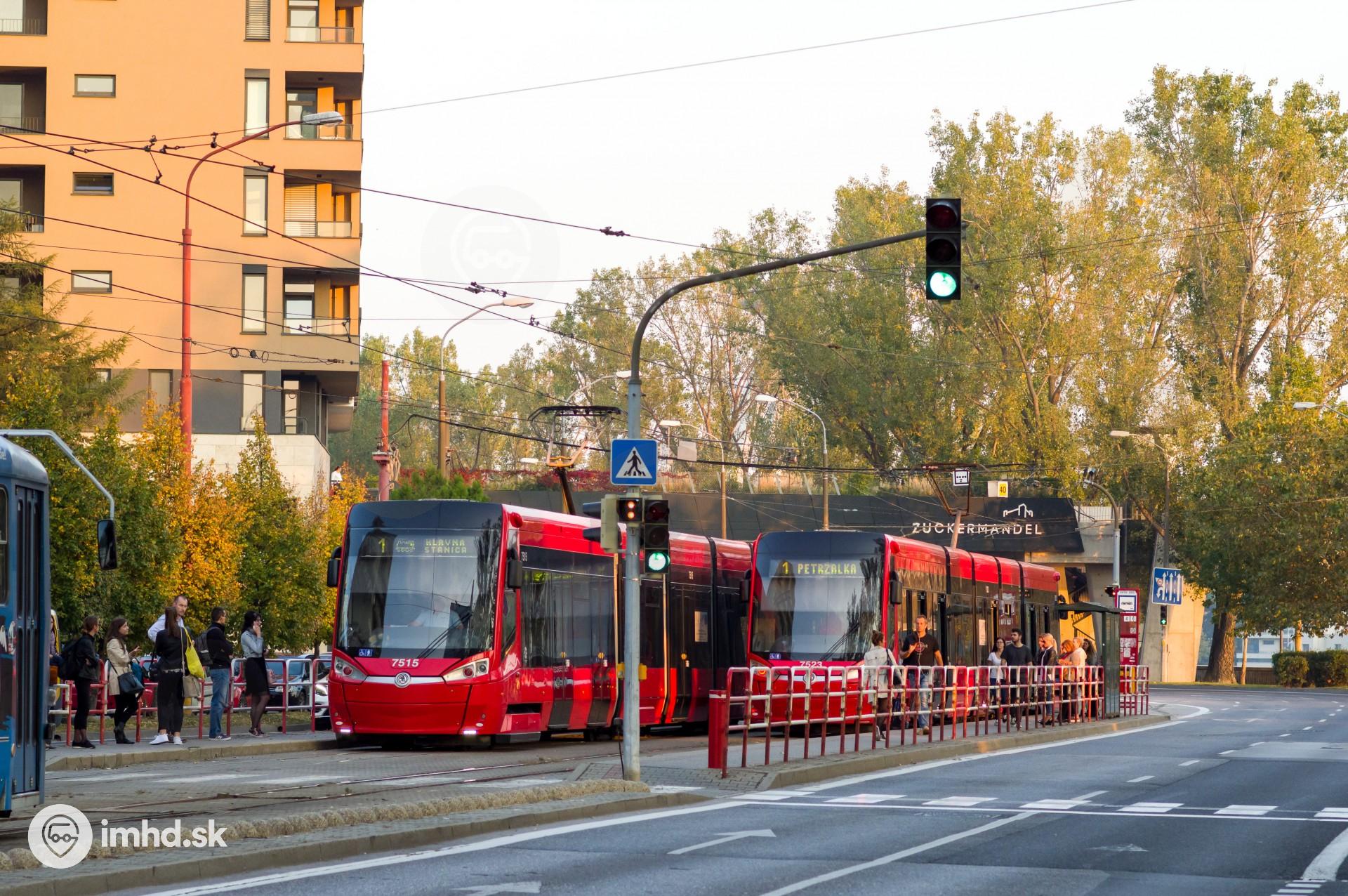 Zastávka Chatam Sófer netradične obsadená električkami linky číslo 1