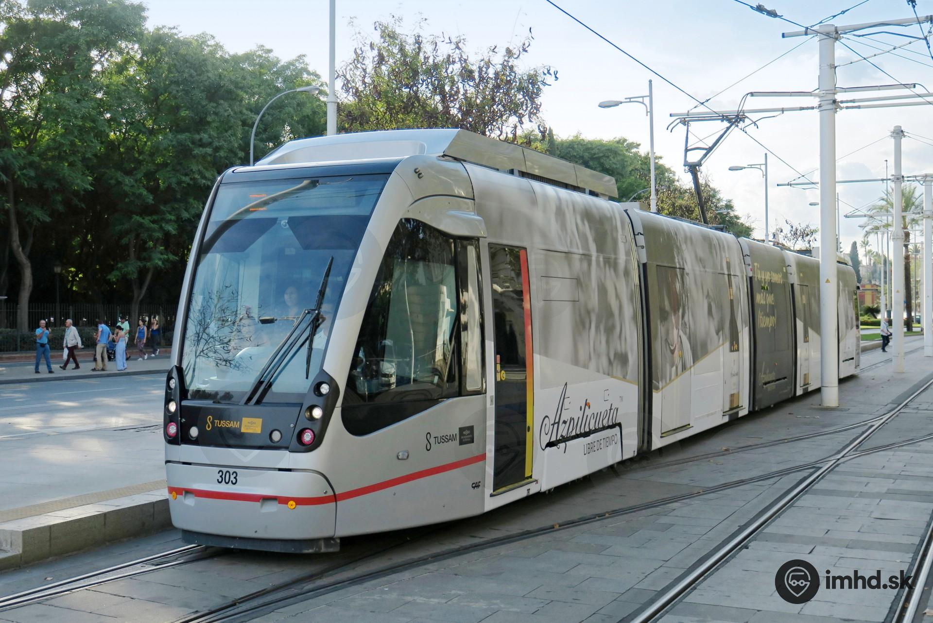 Električka CAF Urbos 3 #303 na zastávke Prado de San Sebastián.