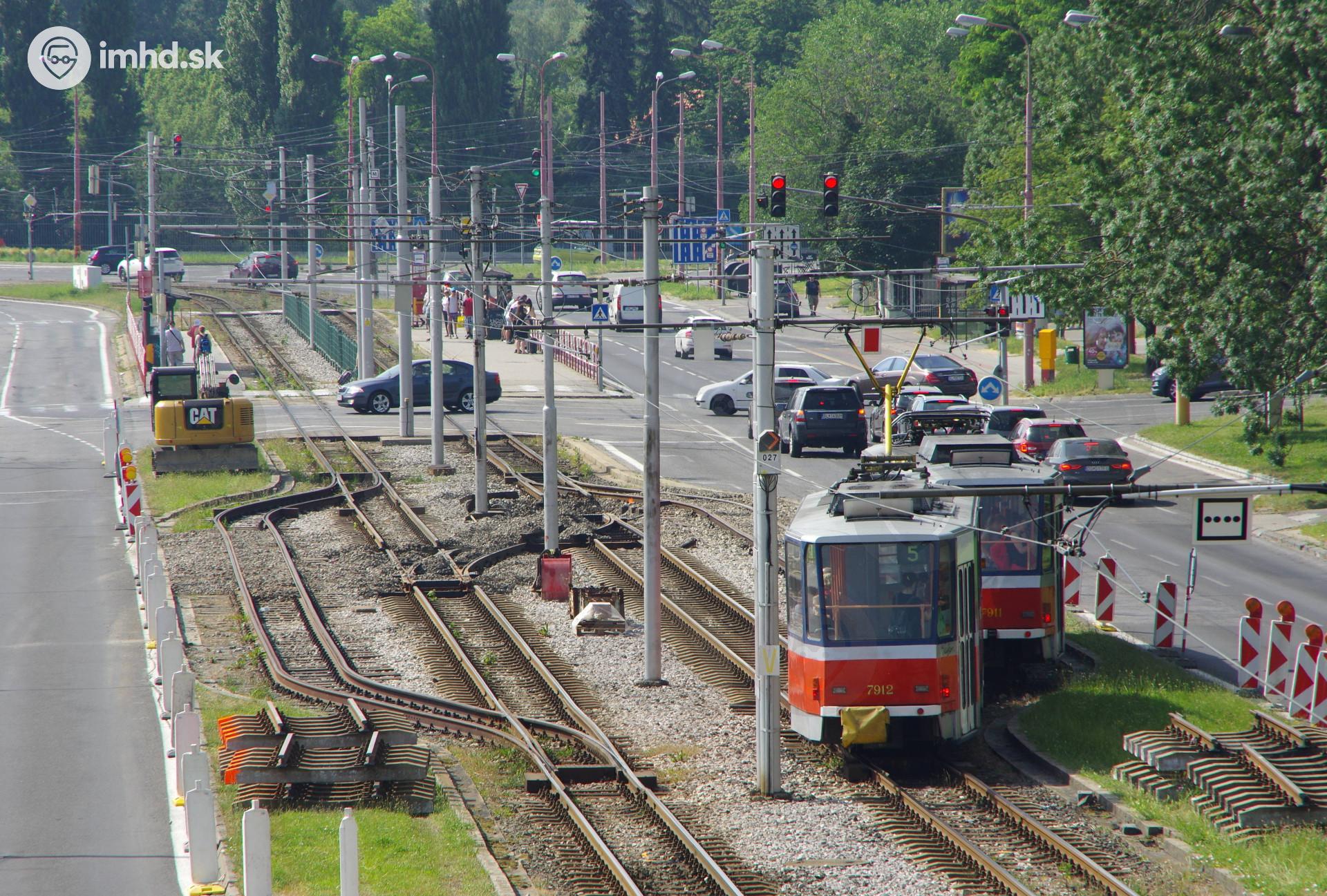 Počas výstavby úvrate premávali električky obojsmerne cez odstavnú koľaj.