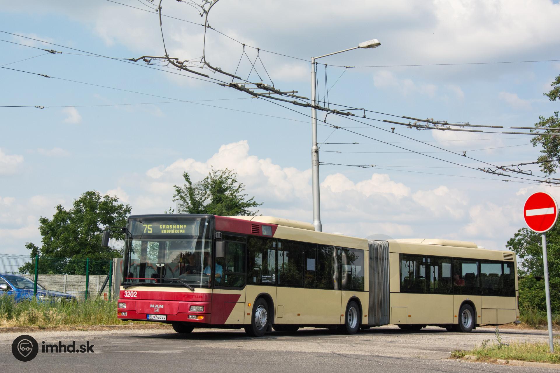 MAN NG 313 #3202 vychádza z obratiska vykonať ďalší spoj na linke 75.
