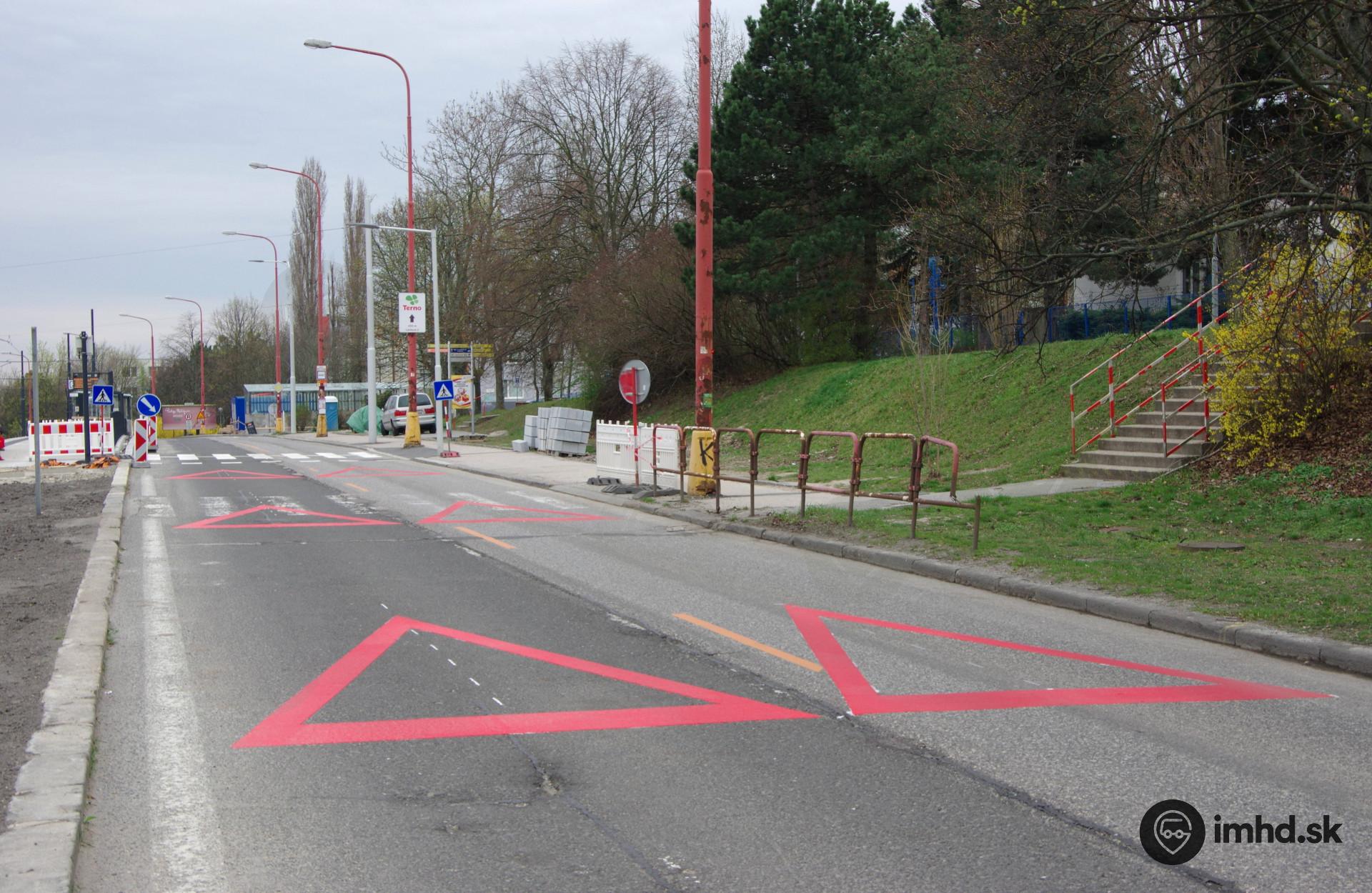 Realizácia vodorovného značenia pred priechodom pri zastávke Borská. | |