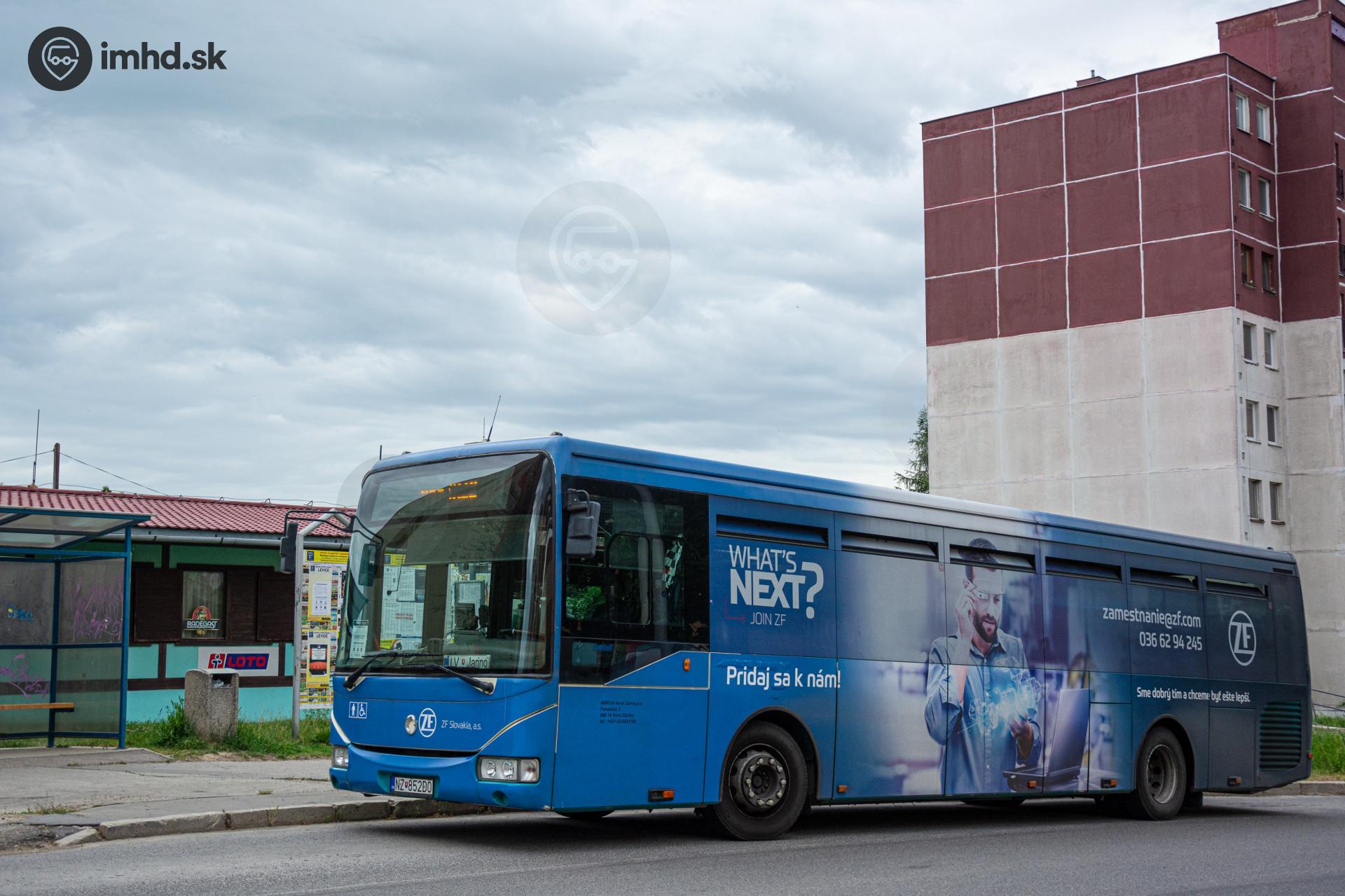 Crossway LE 12M #NZ-852DO s reklamou na závod ZF, ktorý sa nachádza v levickom priemyselnom parku.