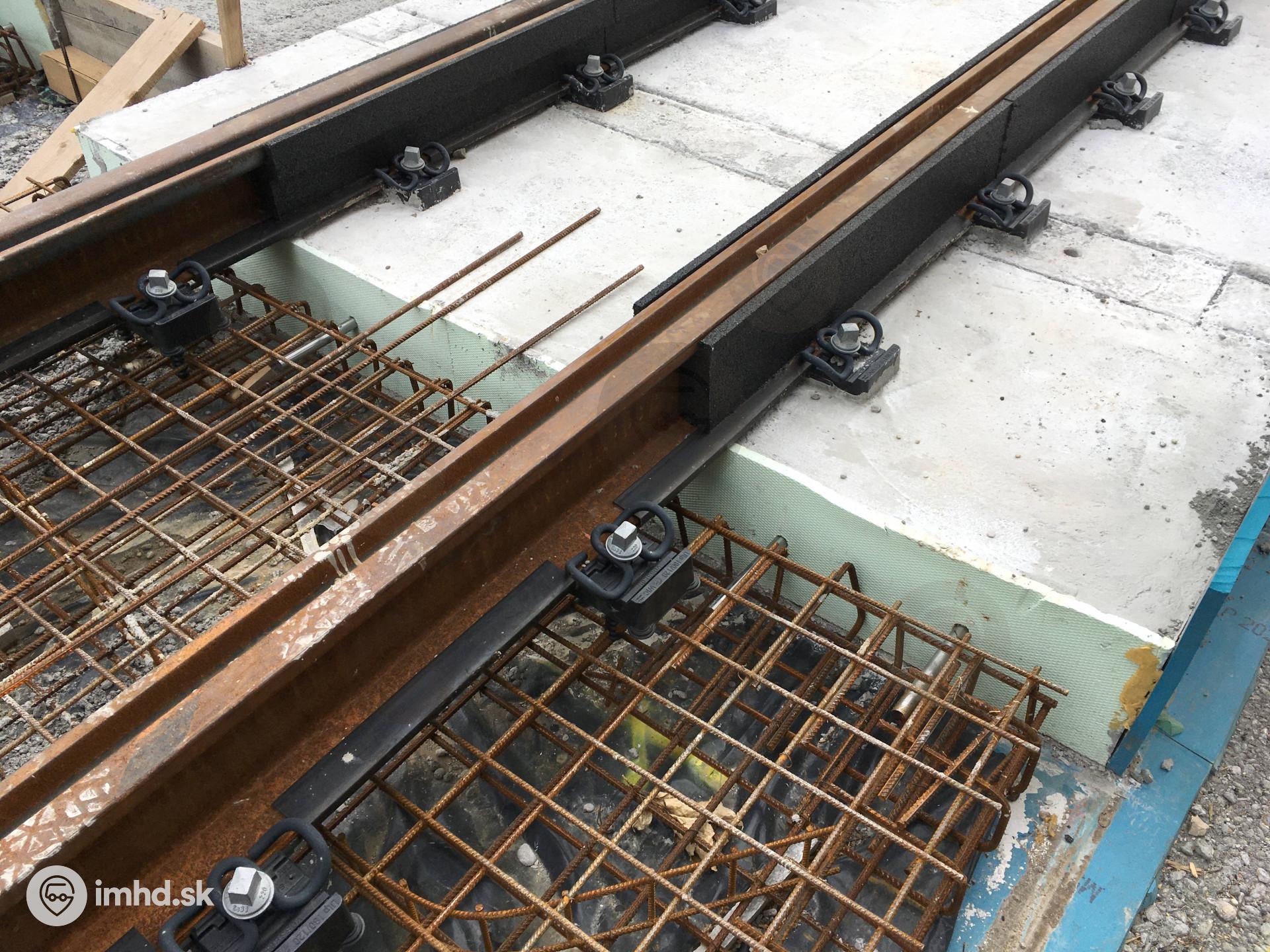 Medzi jednotlivé segmenty betónovej nosnej dosky pri tuneli boli vkladané oceľové tŕne. | |
