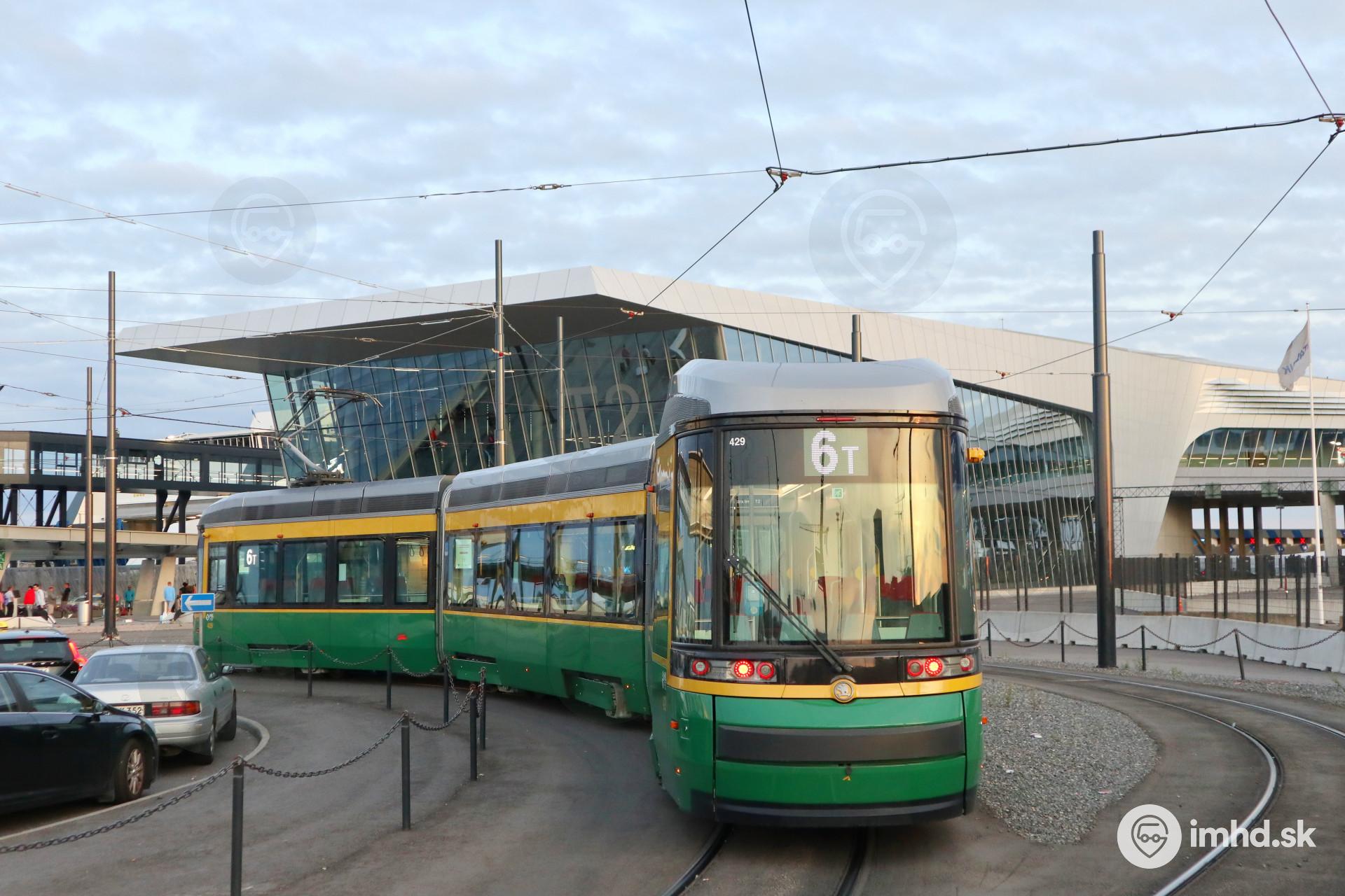 Škoda Artic / Škoda ForCity Smart #429 prechádza obratiskom pri 2. terminálu prístavu Länsisatama.