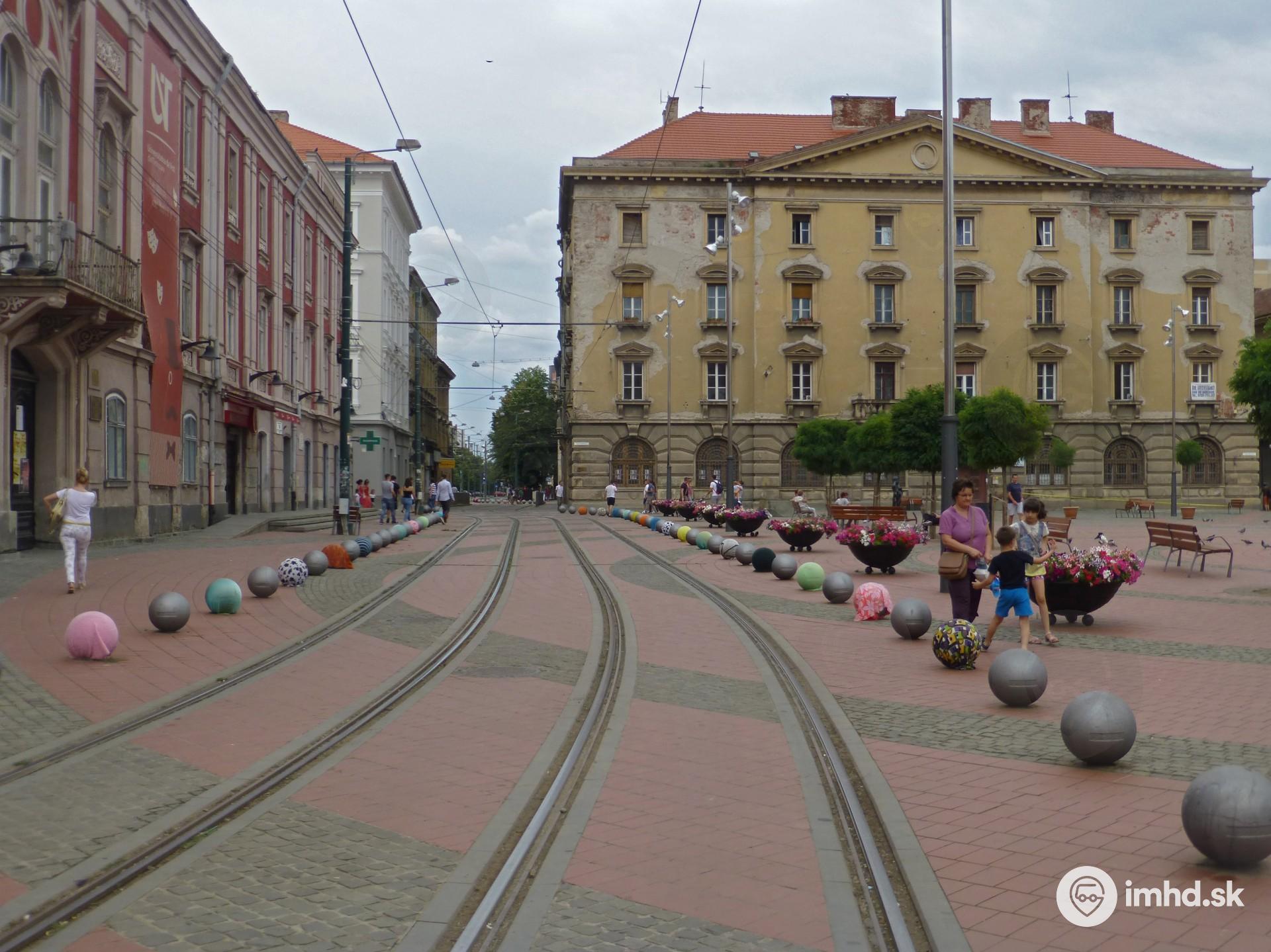 Električková trať v pešej zóne na Námestí slobody.